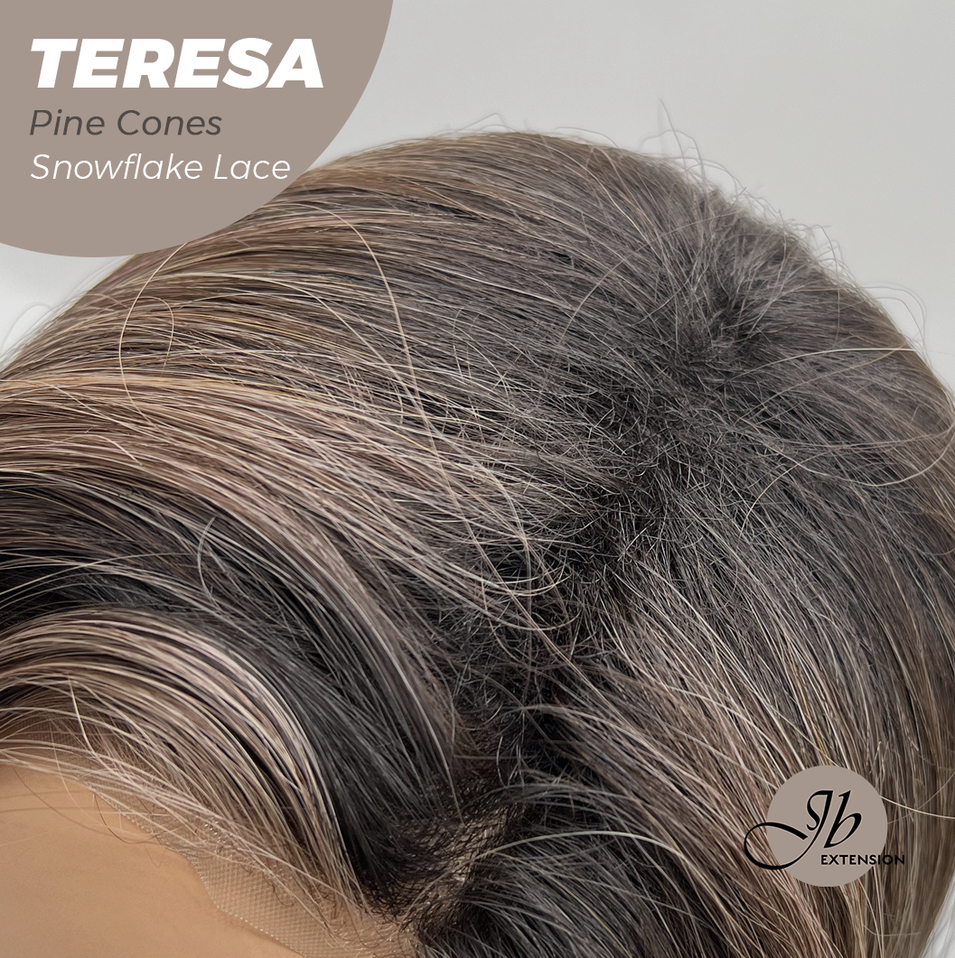 JBEXTENSION 18 Inches Pine Cones Pre-Cut Snowflake Lace Frontlace Glueless Wig TERESA PINE CONES【PERMATEASE】【BENDY EAR TABS】