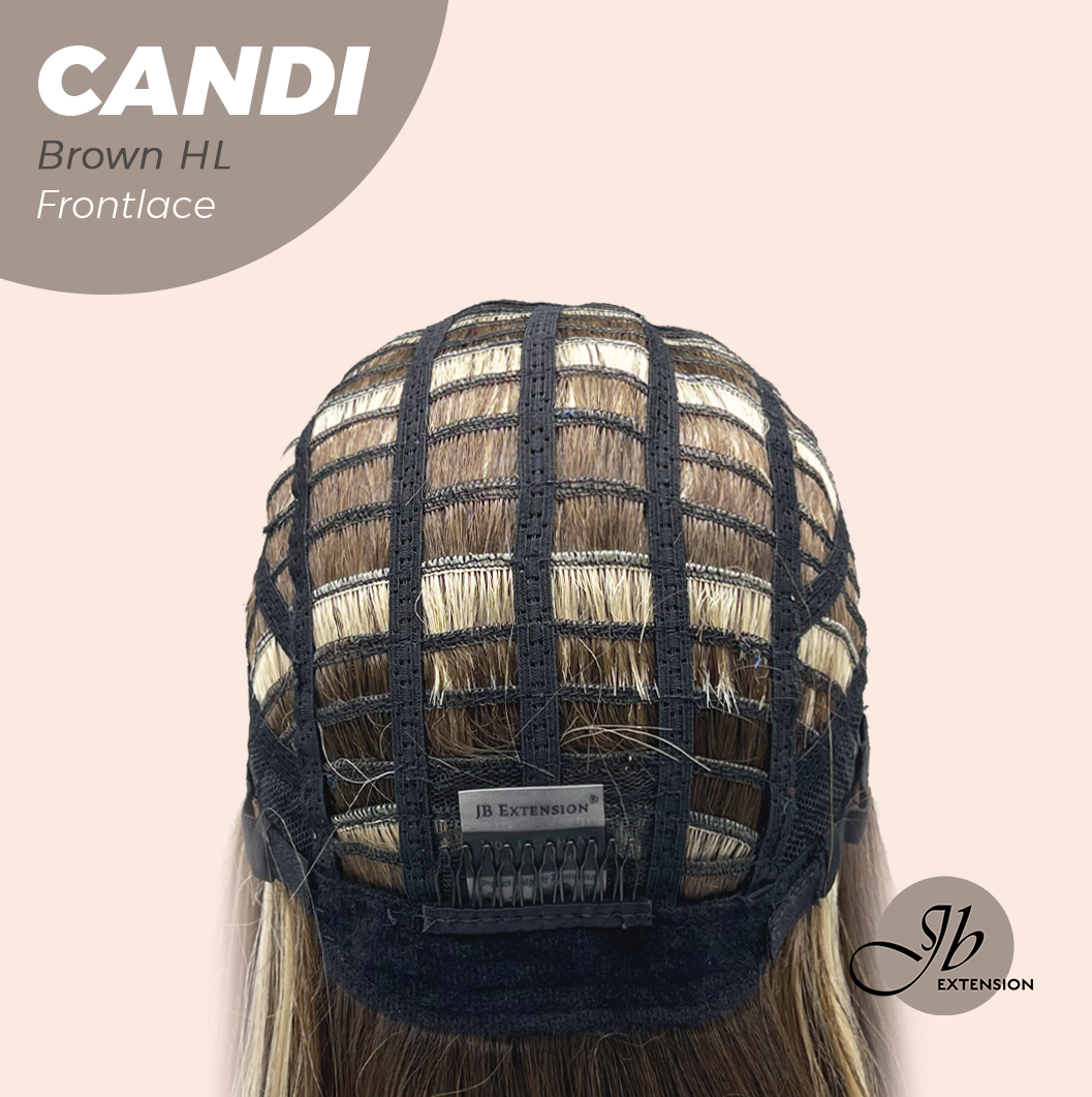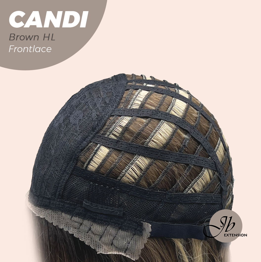 JBEXTENSION 20 Inches Brown Highlight Pre-Cut Side Part Frontlace Glueless Wig CANDI BROWN HIGHLIGHT