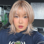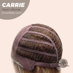 JBEXTENSION 11 Inches Short Hair Peach Blonde Pre-Cut T Part Snowflake Lace Frontlace Glueless Wig with Bangs CARRIE PEACH BLONDE【BENDY EAR TABS】