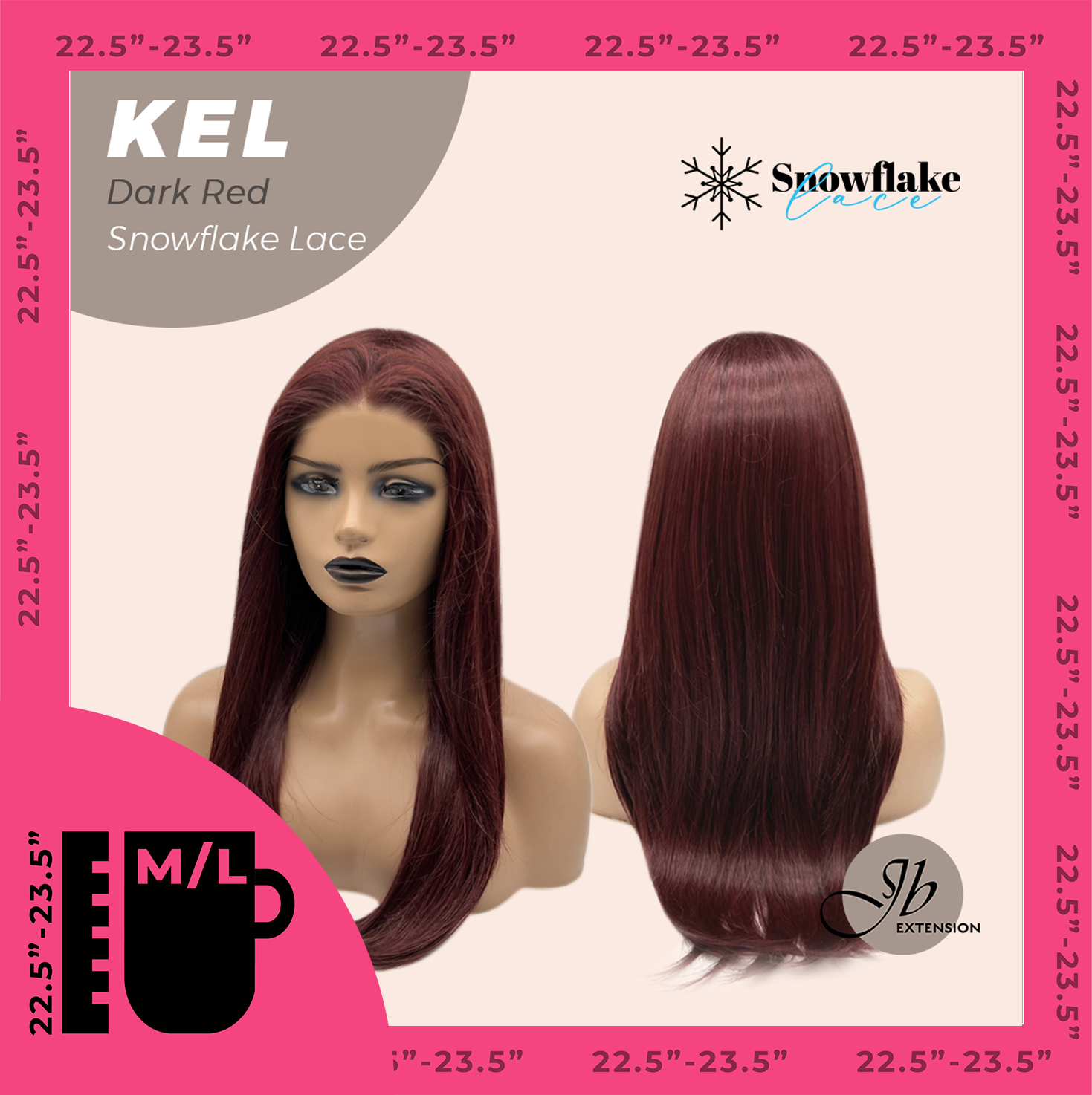 JBEXTENSION 22 Inches Dark Red Pre-Cut Snowflake Lace Frontlace Glueless Wig KEL DARK RED【PERMATEASE】【BENDY EAR TABS】- M/L
