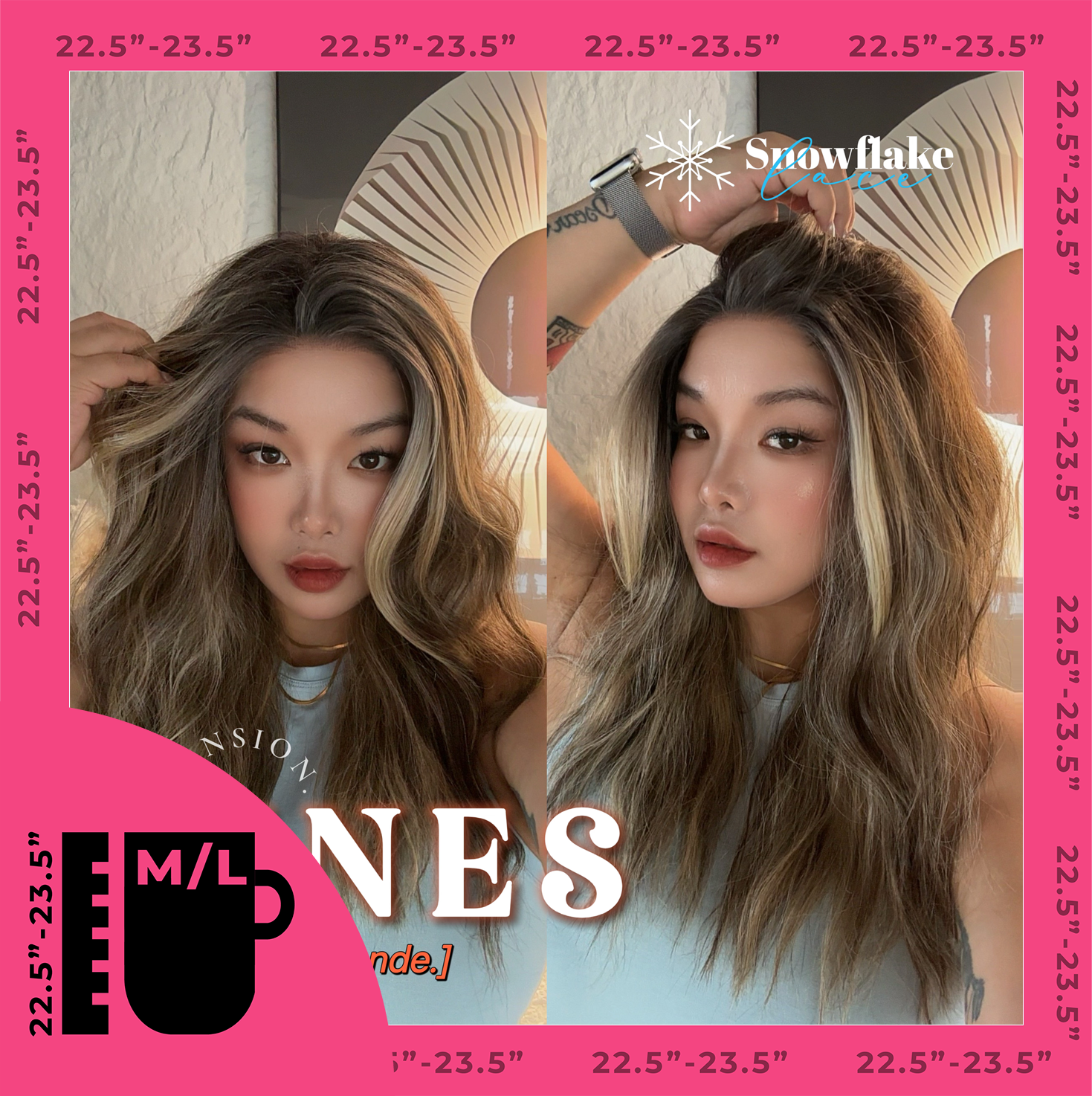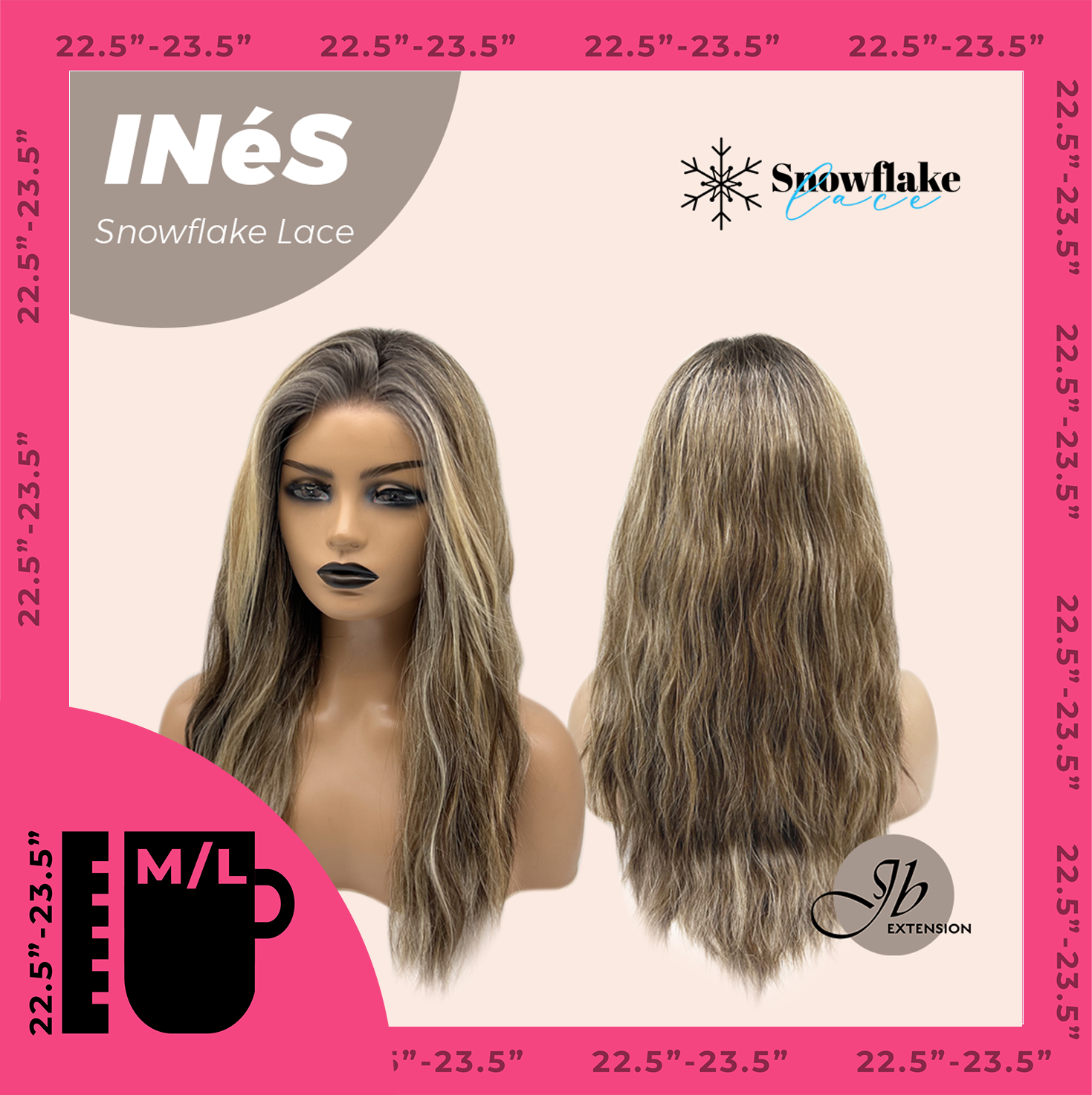 JBEXTENSION 22 Inches Mix Blonde Pre-Cut Snowflake Lace Frontlace Glueless Wig INéS SNOWFLAKE【PERMATEASE】【BENDY EAR TABS】- M/L