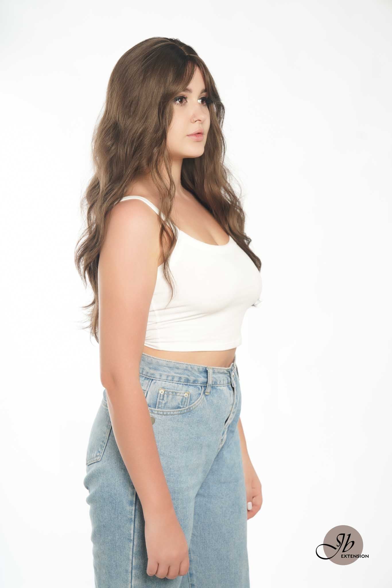 JBEXTENSION 24 Inches Cold Brown Body Wave Wig With Cute Bangs NINI