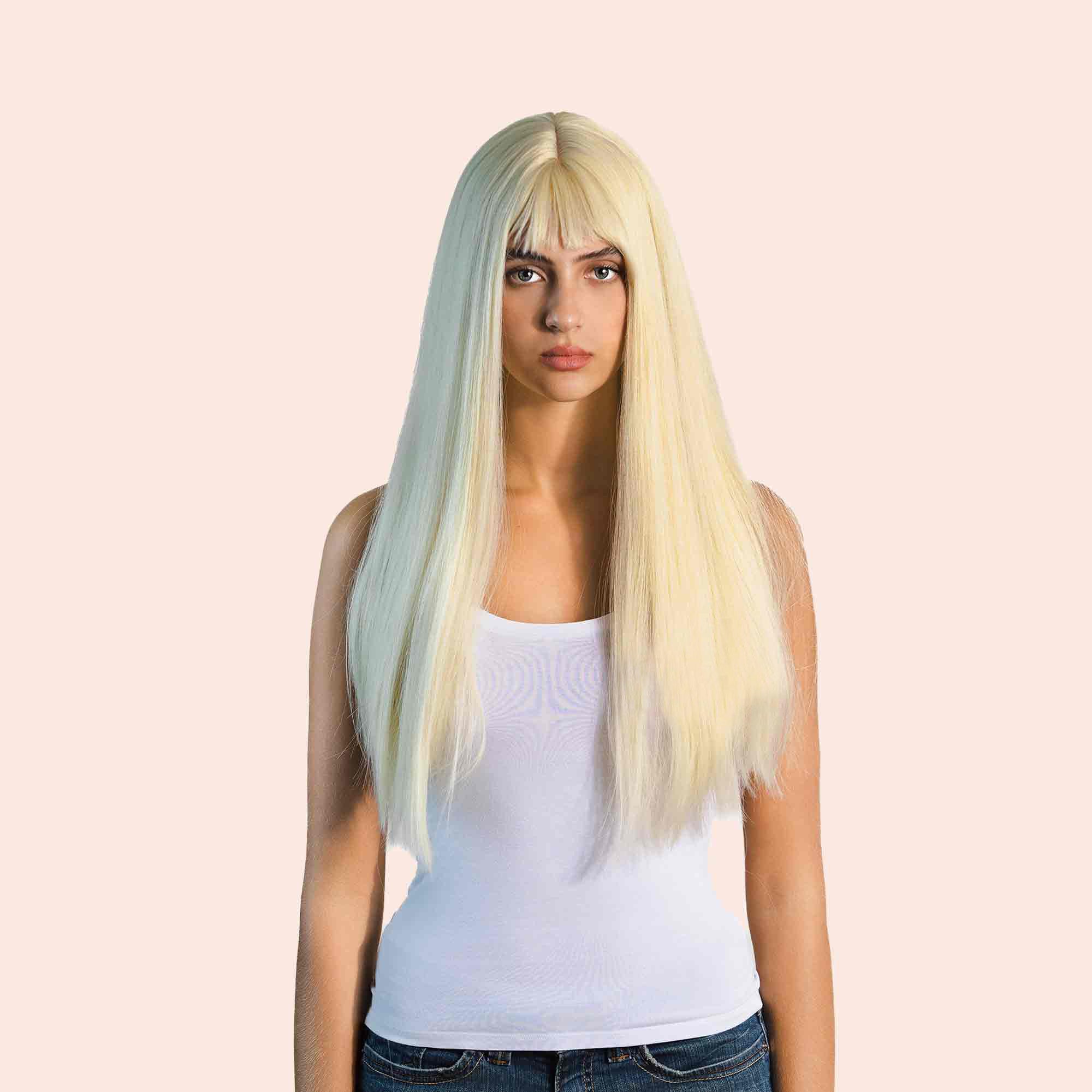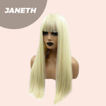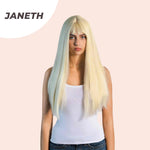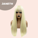 JBEXTENSION 22 Inches Light Blonde Straight Wig With Full Bangs JANETH