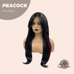 JBEXTENSION 26 Inches Curly Black With ?Multiple Color Pre-Cut Frontlace Wig PEACOCK