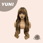 JBEXTENSION 28 Inches Brown With Highlight Curly Wig With Bangs YUNI