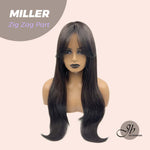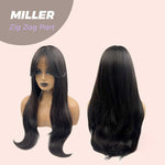JBEXTENSION 26 Inches Soft Black Curly Zig Zag Part Wig With Bangs MILLER