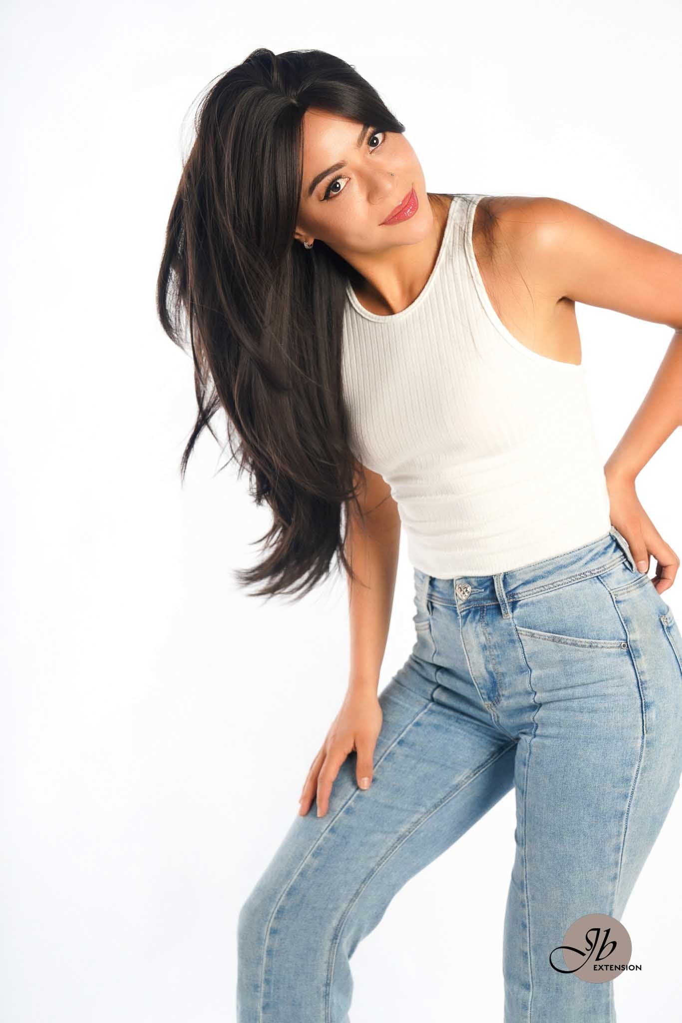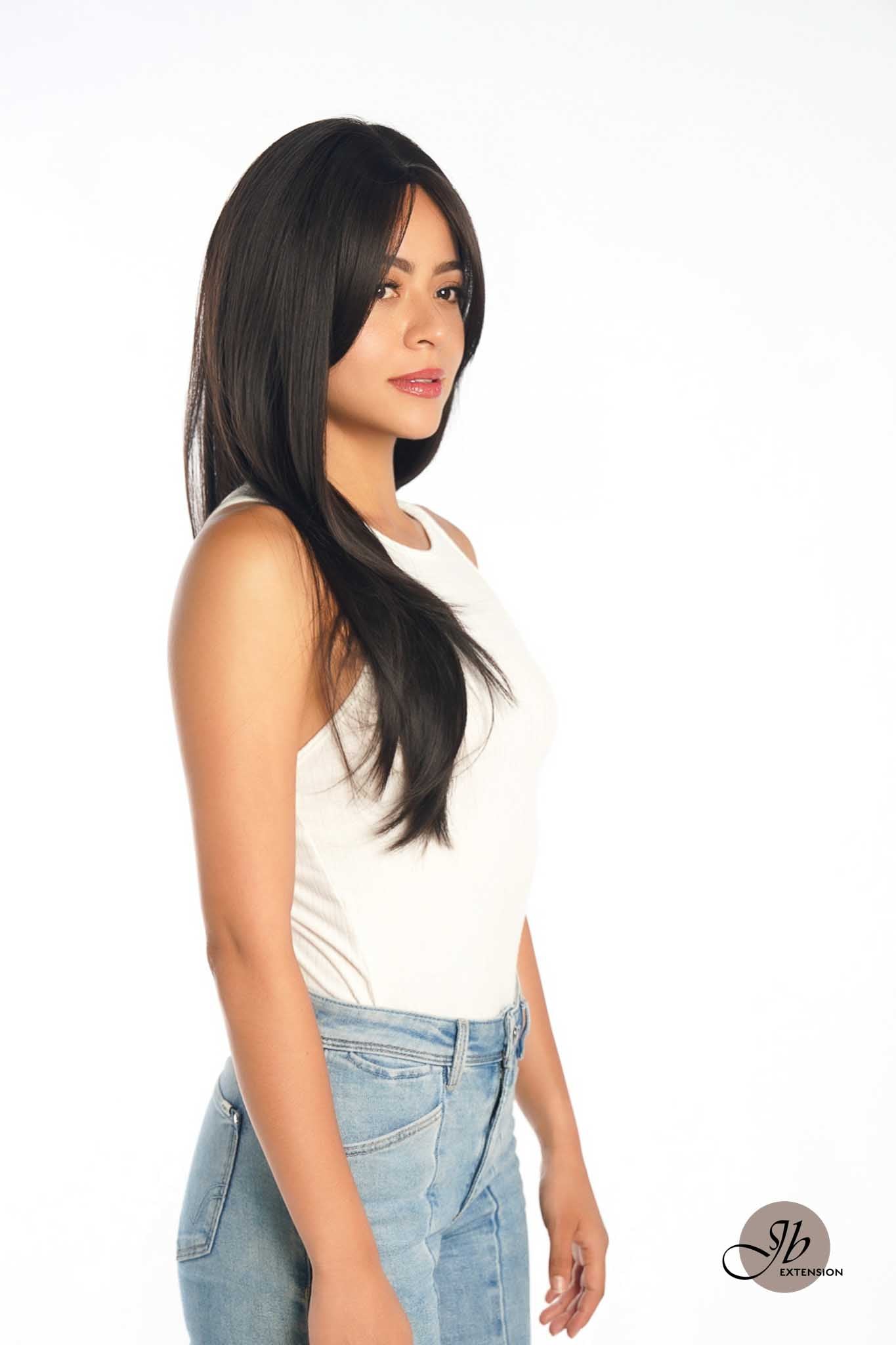 JBEXTENSION 26 Inches Tea Black Darkest Brown Wolf Cut Wig With Bangs ELLIE