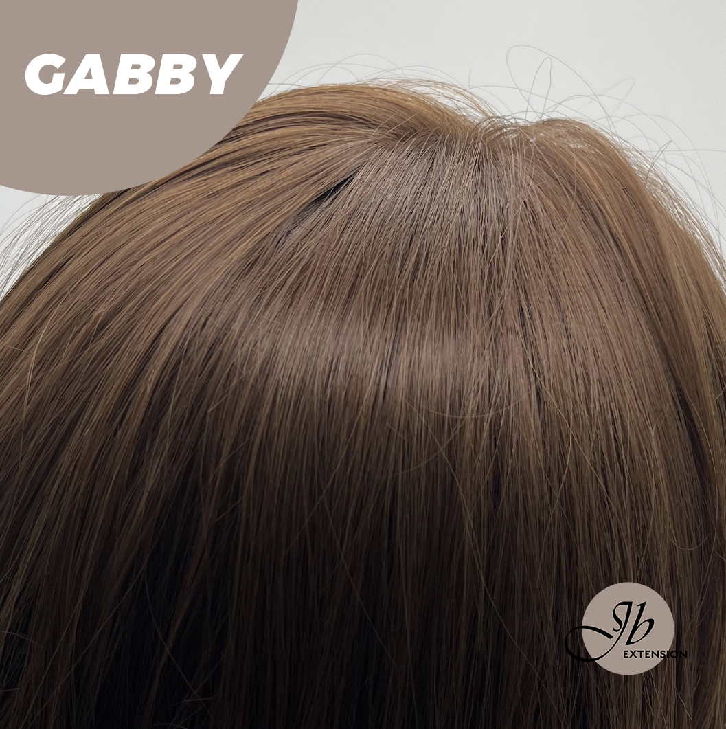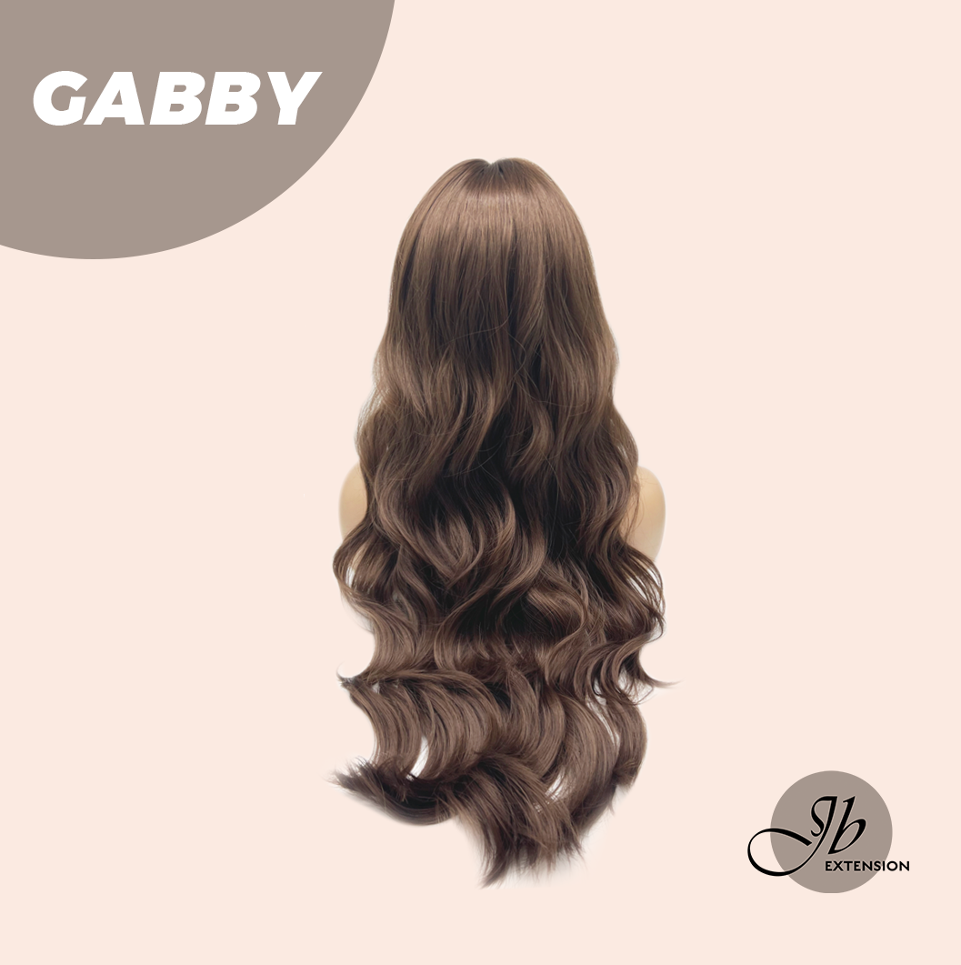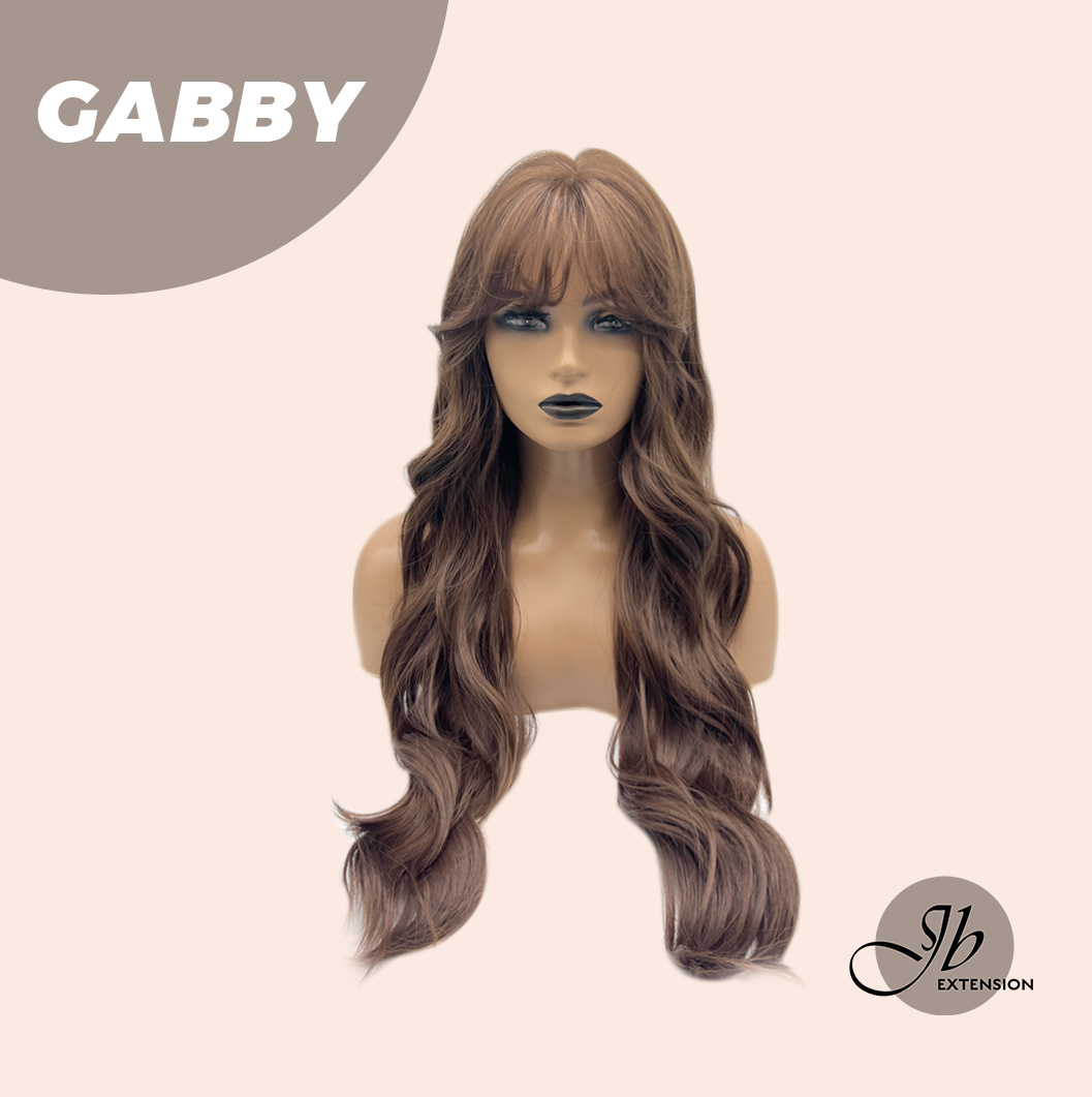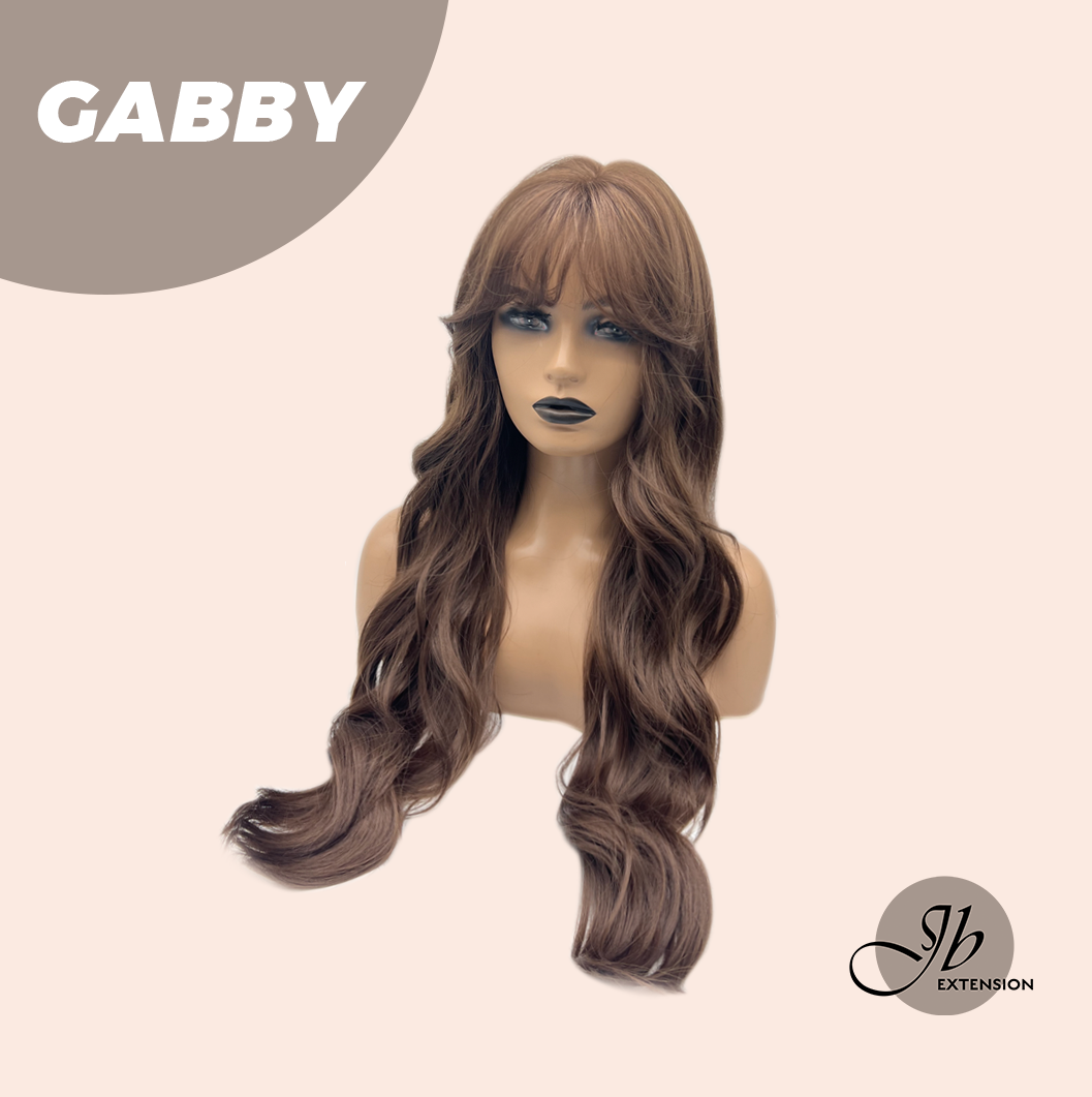 JBEXTENSION 27 Inches Long Curly Mocha Brown Wig With Bangs GABBY