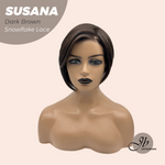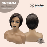 JBEXTENSION 9 Inches Dark Brown Pre-Cut Side Part Snowflake Lace Frontlace Glueless Wig SUSANA DARK BROWN【BENDY EAR TABS】
