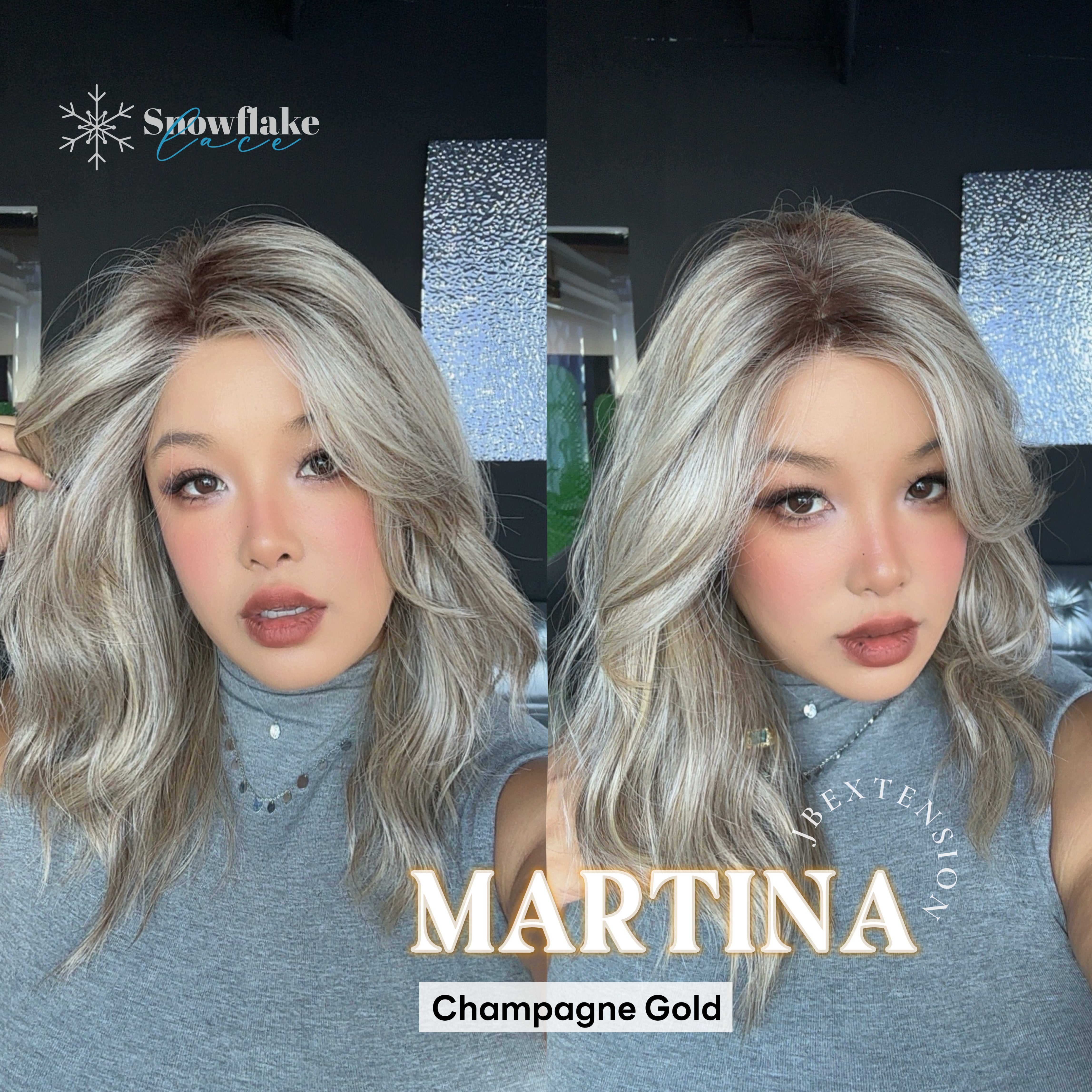 [PRE-ORDER] JBEXTENSION 17 Inches Wave Champagne Gold Pre-Cut Side Part Snowflake Lace Frontlace Glueless Wig MARTINA CHAMPAGNE GOLD【BENDY EAR TABS】