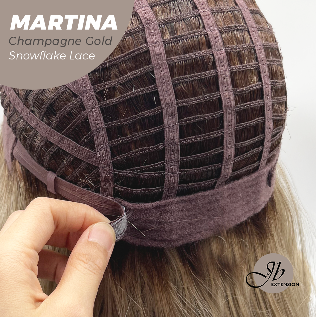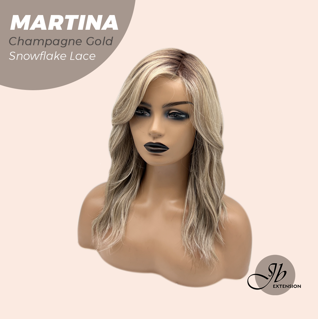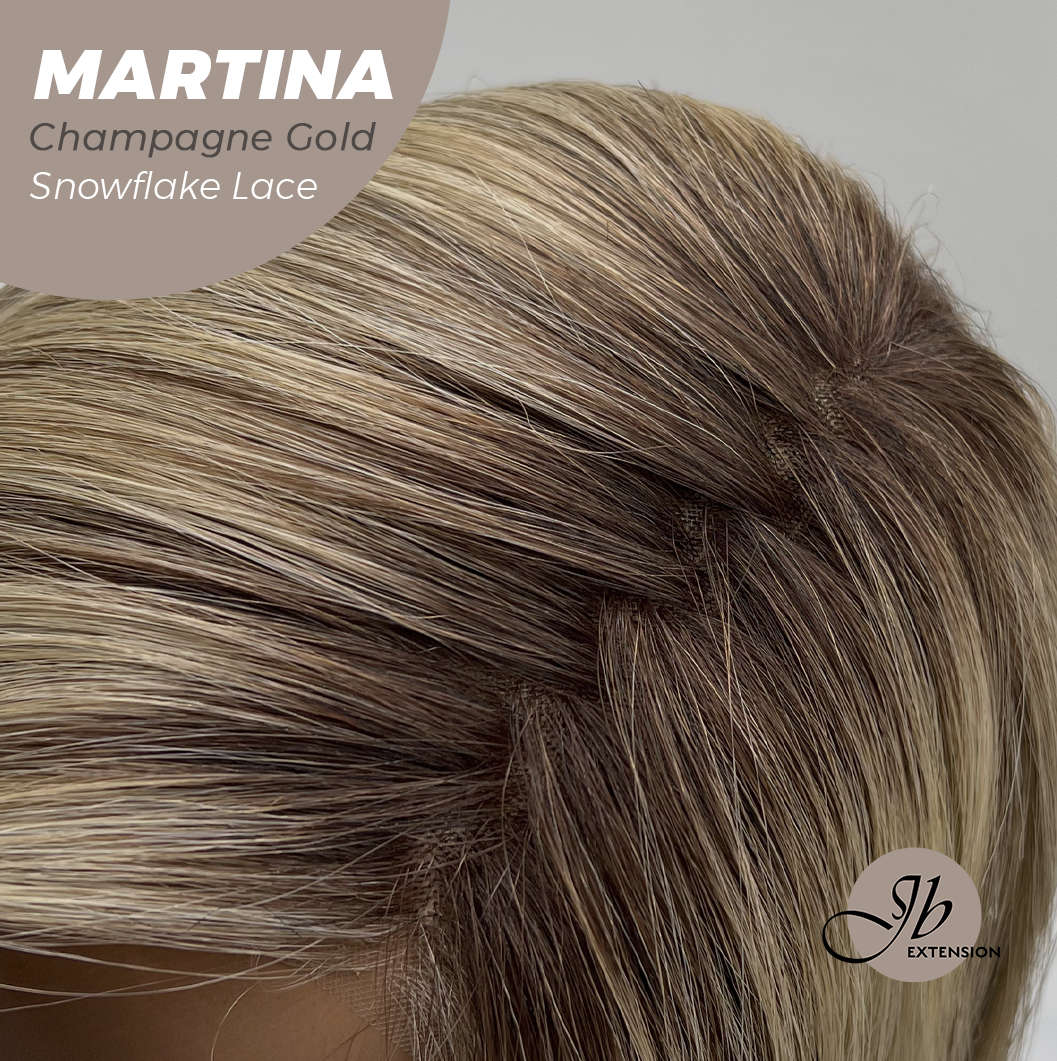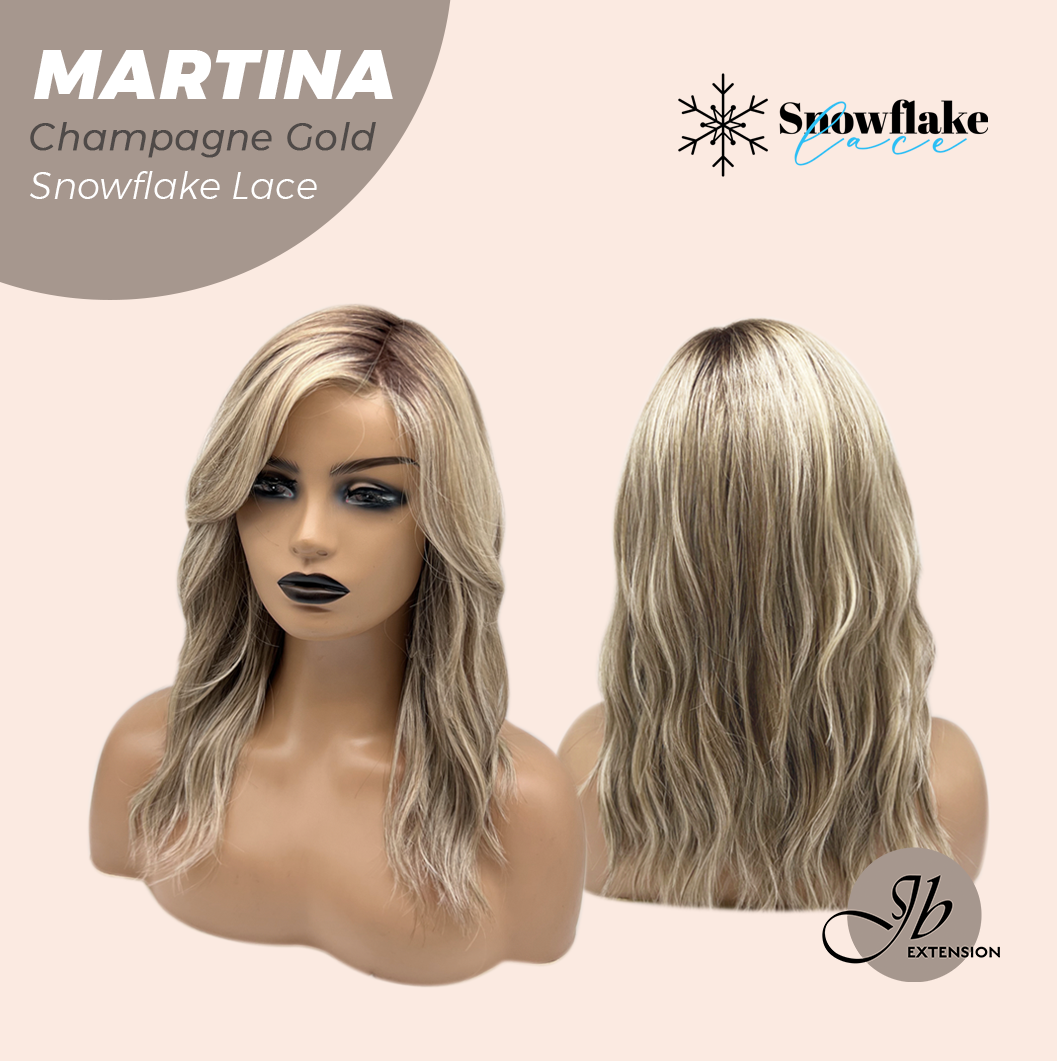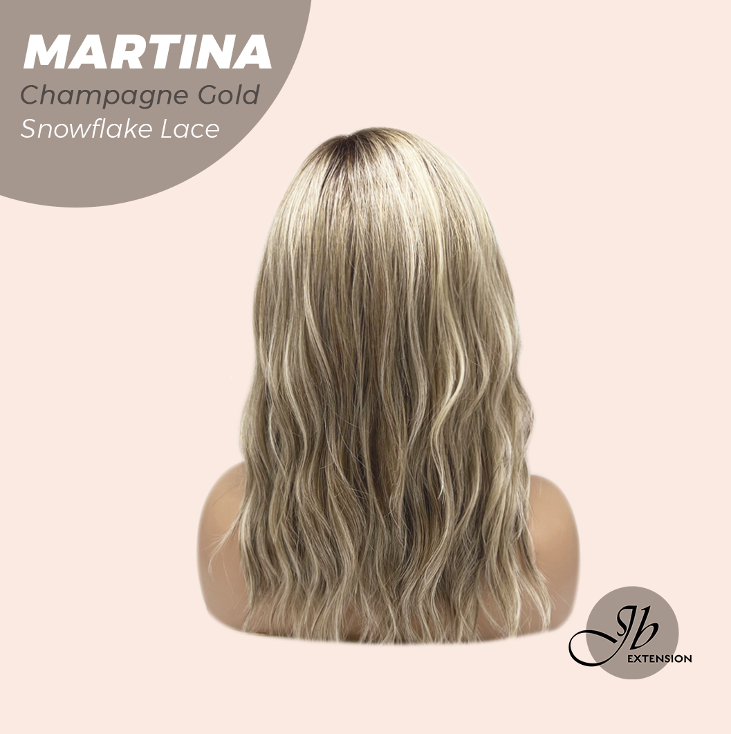 JBEXTENSION 17 Inches Wave Champagne Gold Pre-Cut Side Part Snowflake Lace Frontlace Glueless Wig MARTINA CHAMPAGNE GOLD【BENDY EAR TABS】