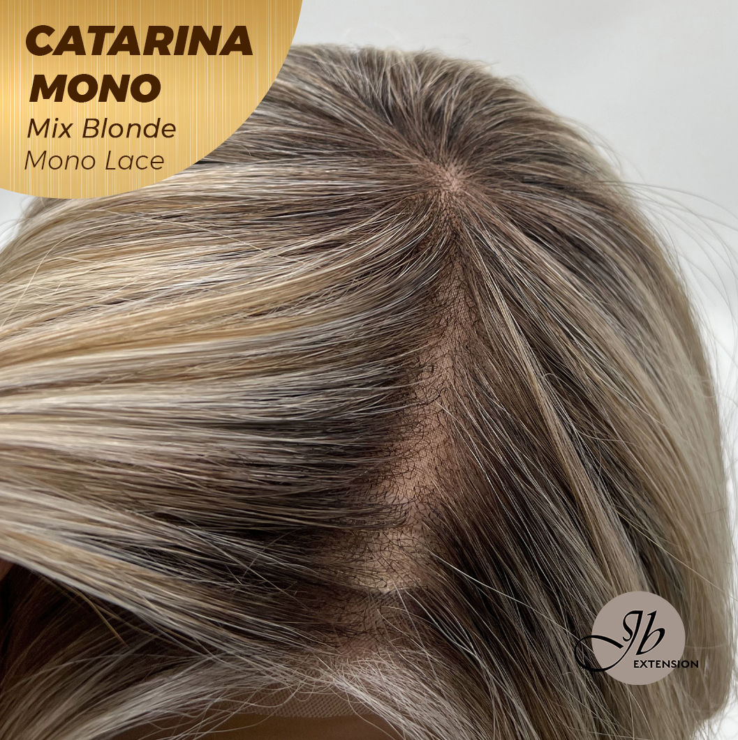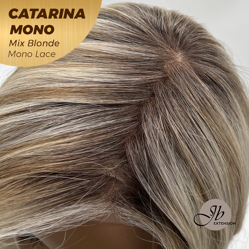 JBEXTENSION CATARINA MONO Full Monofilament Handmade Full Lace Full Hand Tied Wig 13 Inches Mix Blonde Mono Lace Handmade Futura Fiber Wig with Anti-slip Silicone Strips Glueless Wig CATARINA MONO MIX BLONDE【BENDY EAR TABS】