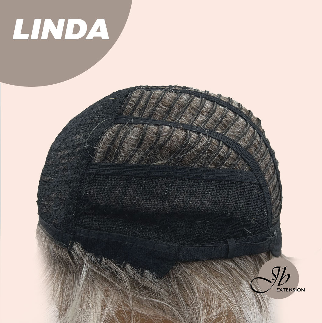 LINDA Wig by JBextension has a natural lace front hairline allowing you the option to style off the face. ?The LINDA creates a natural hair growth pattern and allows you to keep the volume need all day long. LINDA also blends beautifully down to a neck-hugging nape. With a Ready to Wear Machine weft back, velvet ear tabs & Adjustable straps.