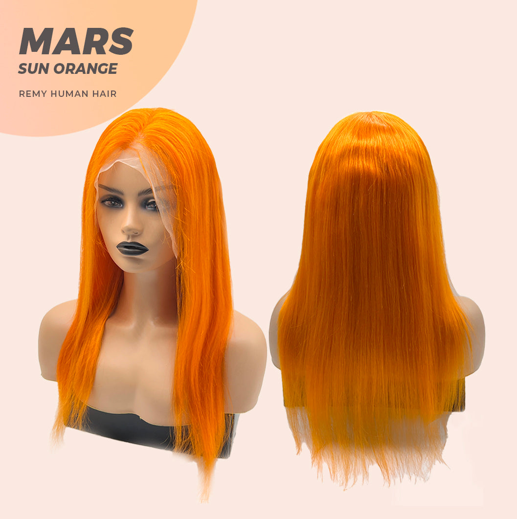 JBEXTENSION Real Human Hair 18 inches 13X5 Lakefront Free Parting 150 Density MARS ( Sun orange )