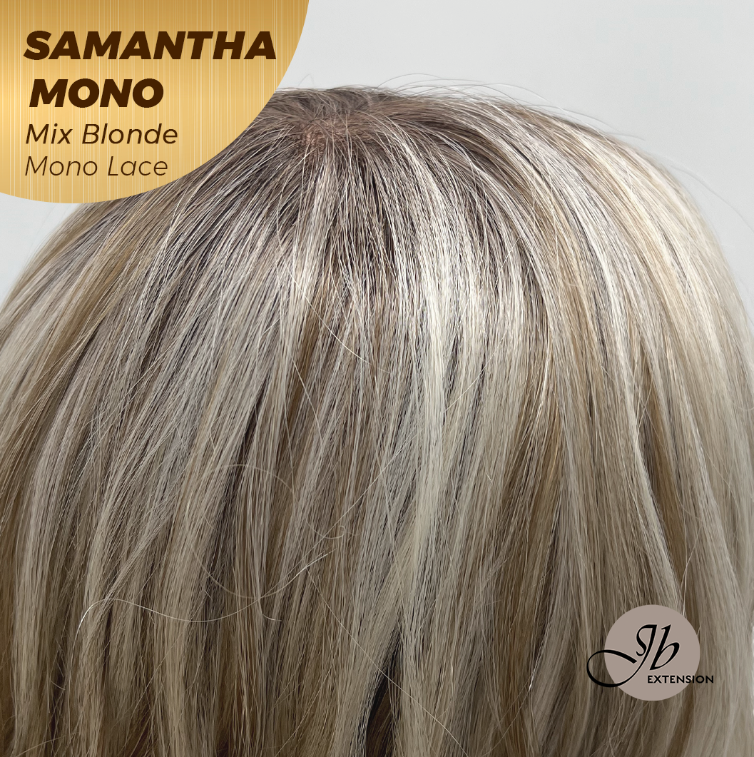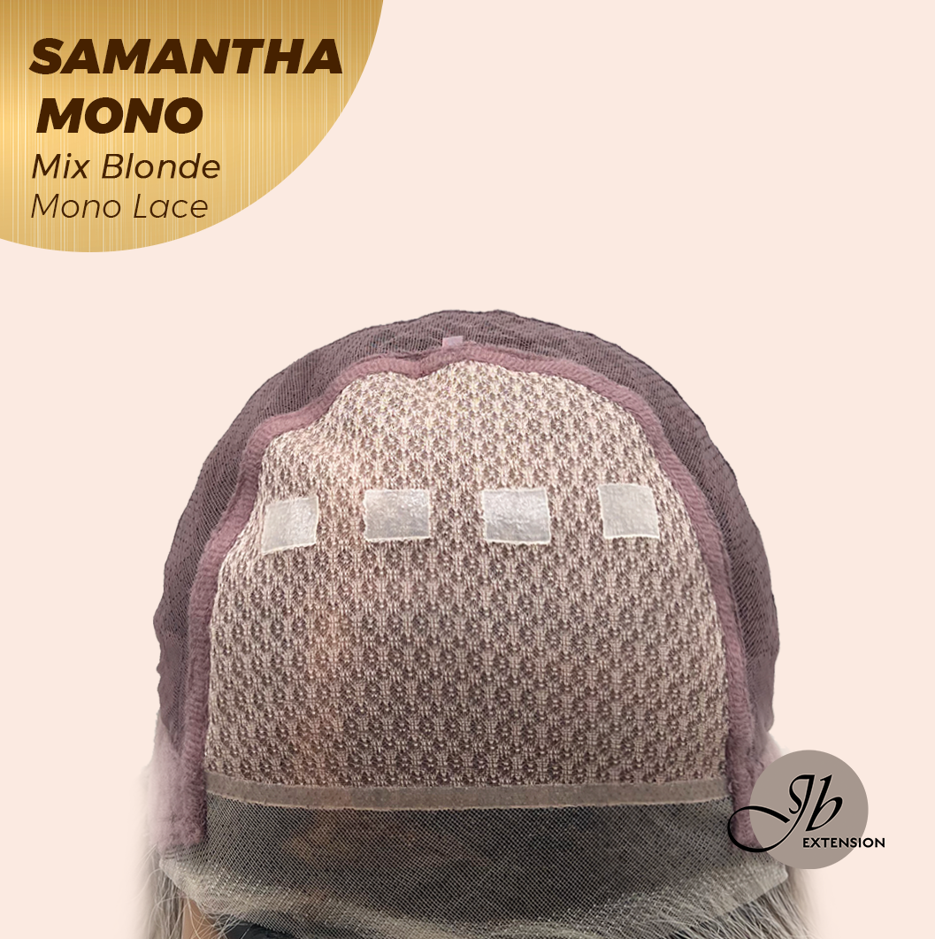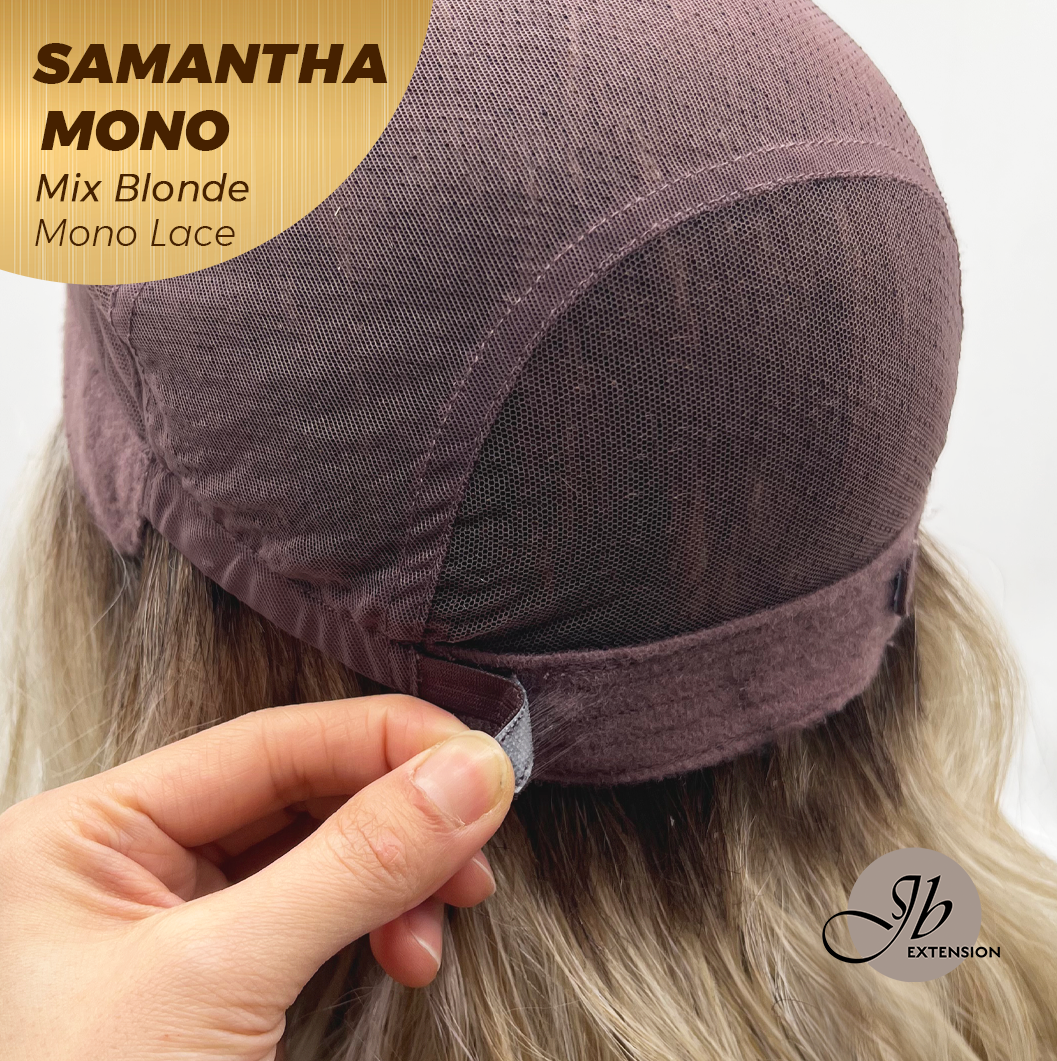 JBEXTENSION SAMANTHA MONO Full Monofilament Handmade Full Lace Full Hand Tied Wig 17 Inches Mix Blonde Mono Lace Handmade Futura Fiber Wig with Anti-slip Silicone Strips Glueless Wig SAMANTHA MONO MIX BLONDE【BENDY EAR TABS】