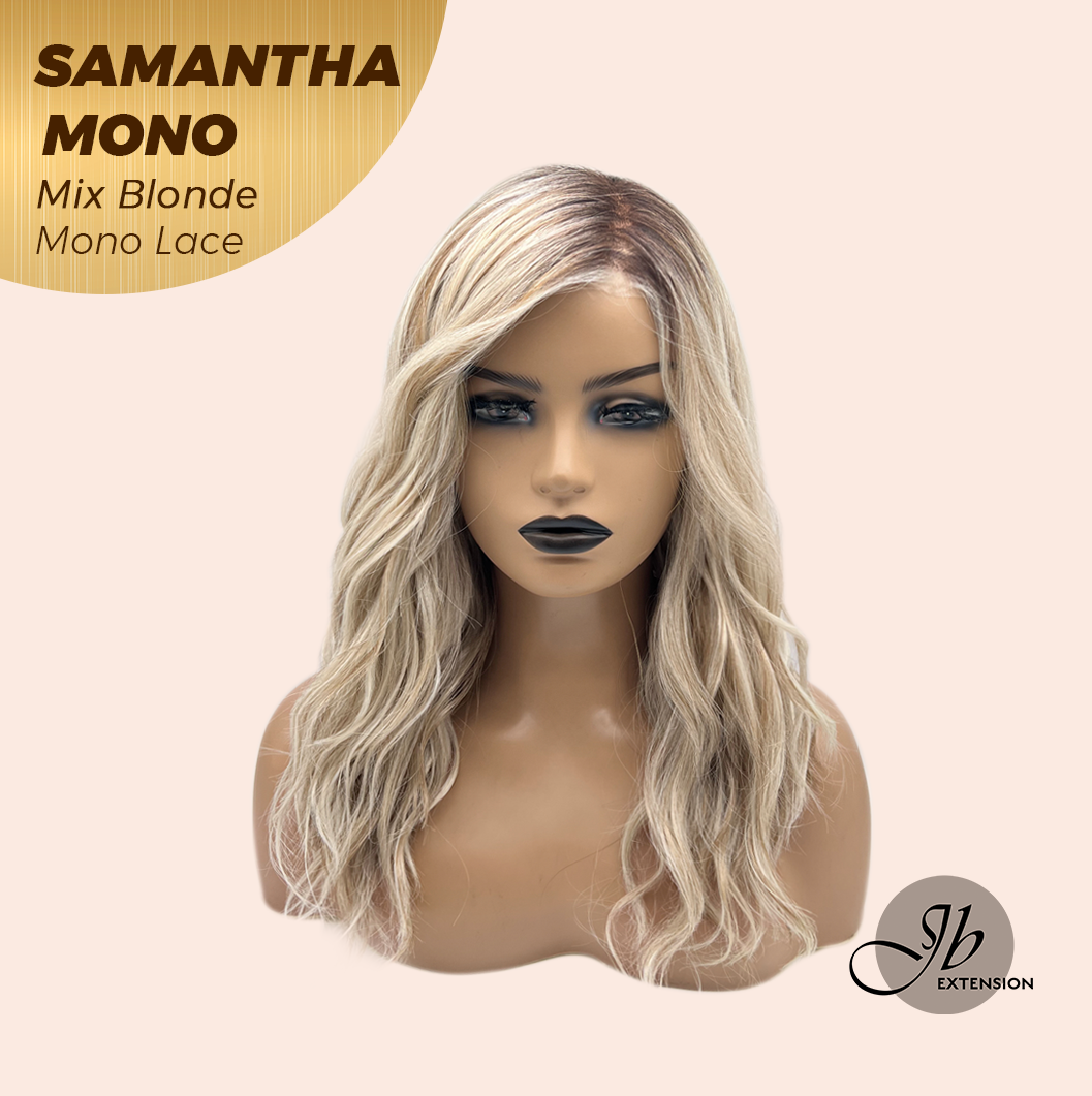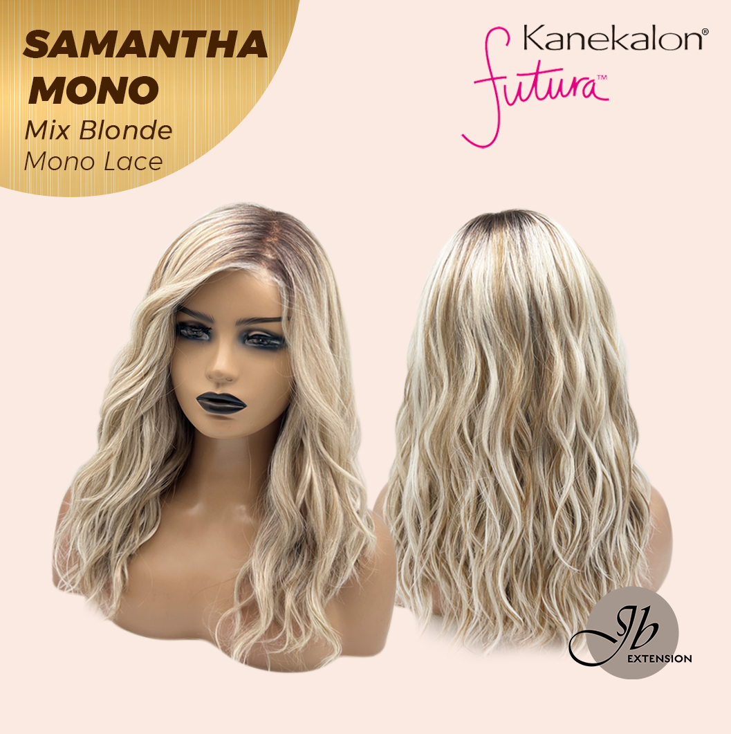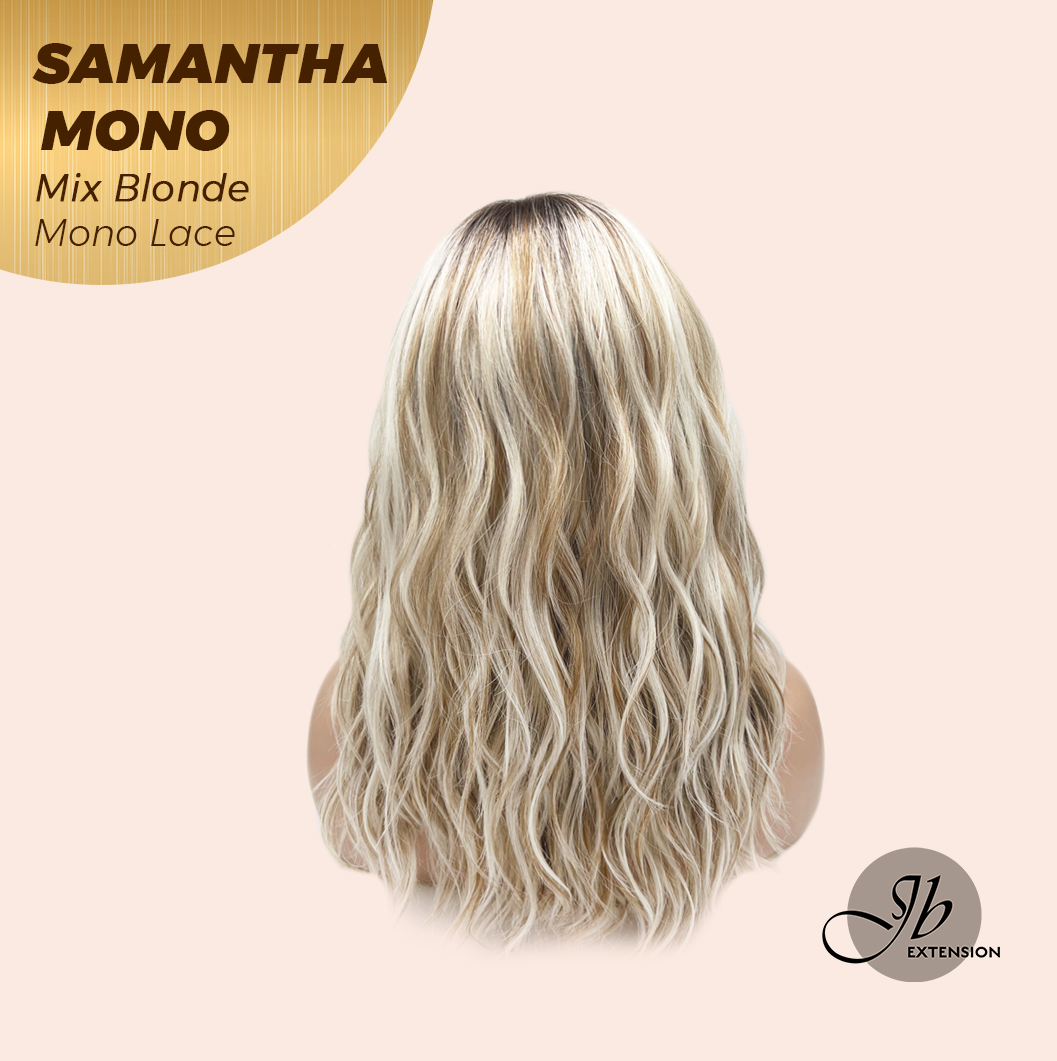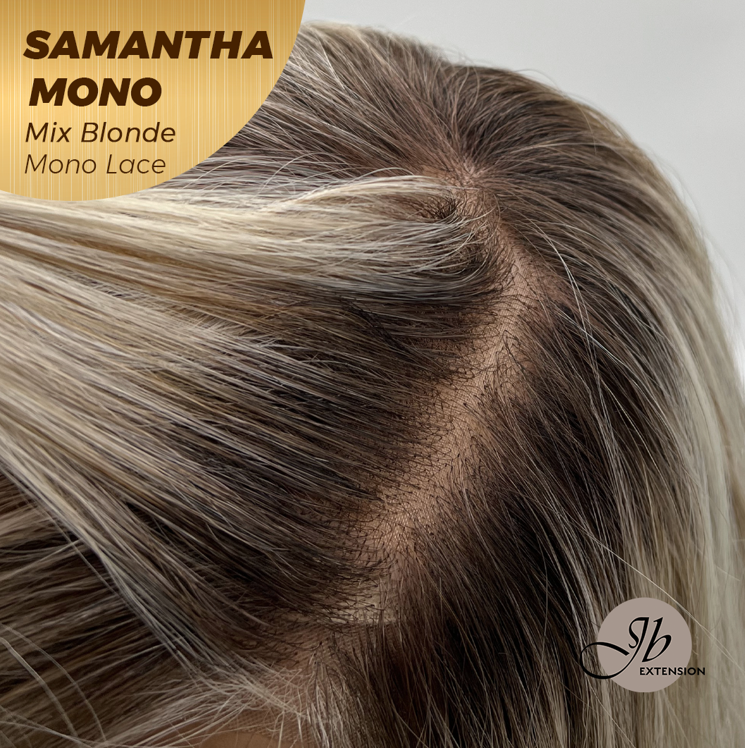 JBEXTENSION SAMANTHA MONO Full Monofilament Handmade Full Lace Full Hand Tied Wig 17 Inches Mix Blonde Mono Lace Handmade Futura Fiber Wig with Anti-slip Silicone Strips Glueless Wig SAMANTHA MONO MIX BLONDE【BENDY EAR TABS】