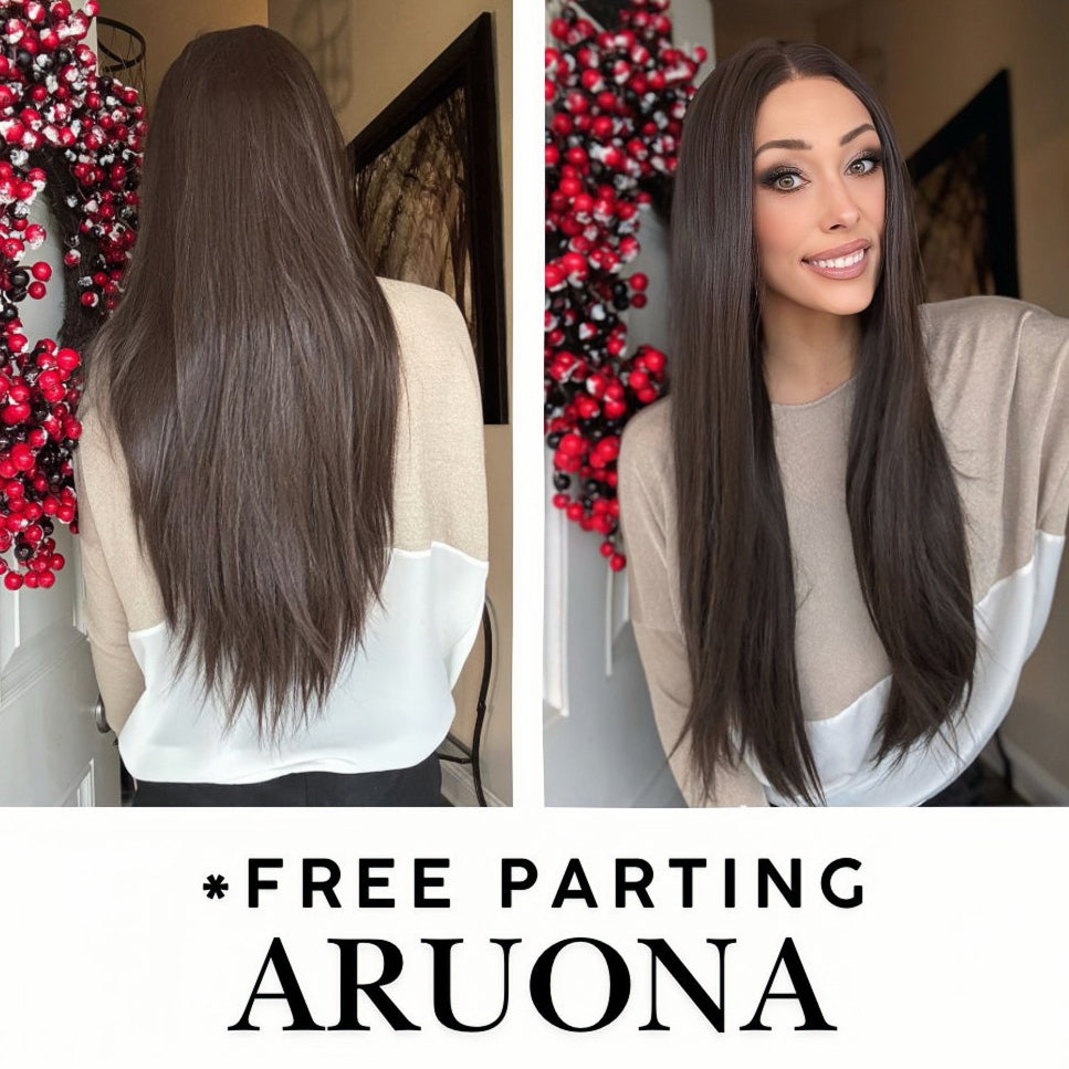 JBEXTENSION 28 Inches Brown Straight 13X3.5 Free Part Pre-Cut Frontlace Glueless Wig ARUONA BROWN