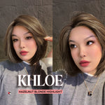 HOT OF SEASON - 12 Inches Bob Cut Hazelnut Blonde Highlight Pre-Cut Snowflake Lace Frontlace Glueless Wig KHLOE HAZELNUT【PERMATEASE】【BENDY EAR TABS】