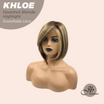 JBEXTENSION 12 Inches Bob Cut Hazelnut Blonde Highlight Pre-Cut Snowflake Lace Frontlace Glueless Wig KHLOE HAZELNUT【PERMATEASE】【BENDY EAR TABS】