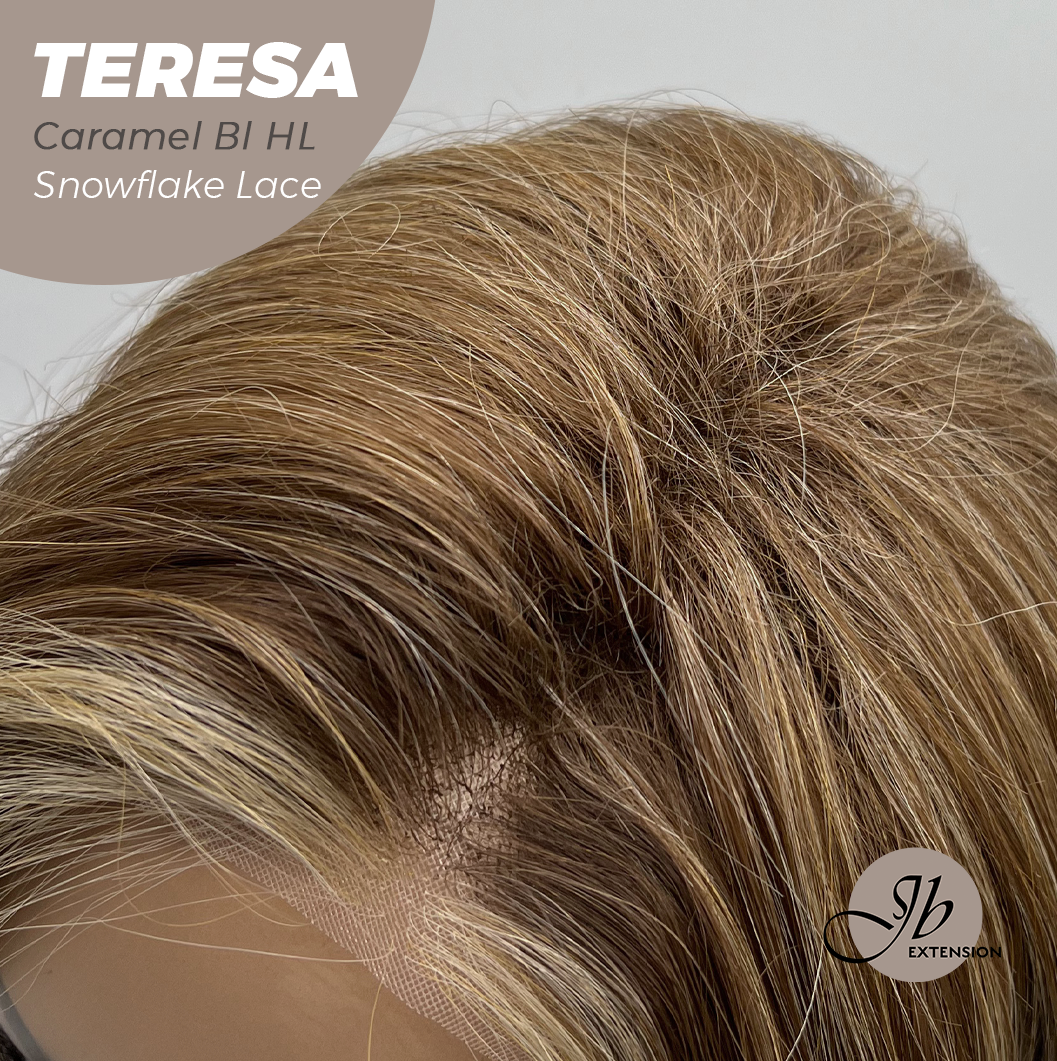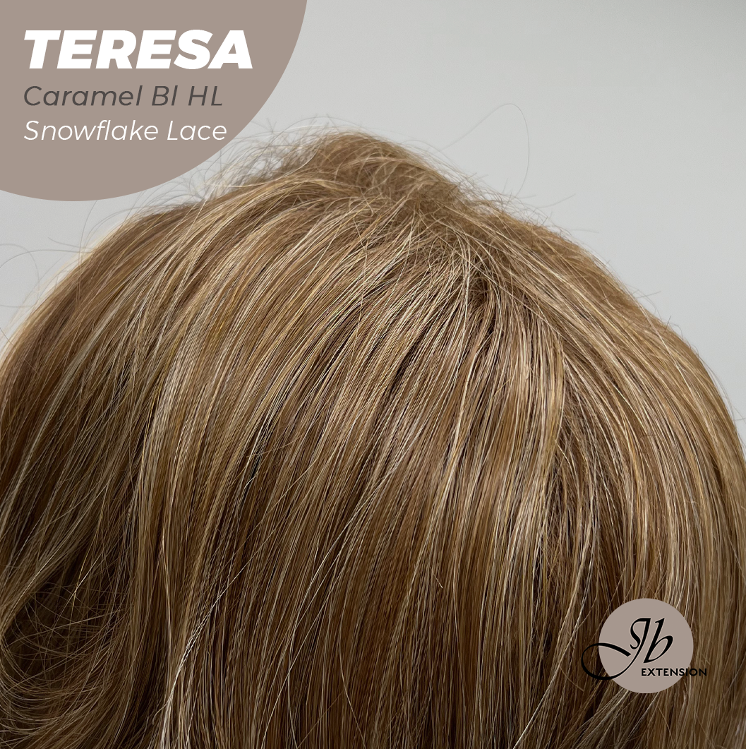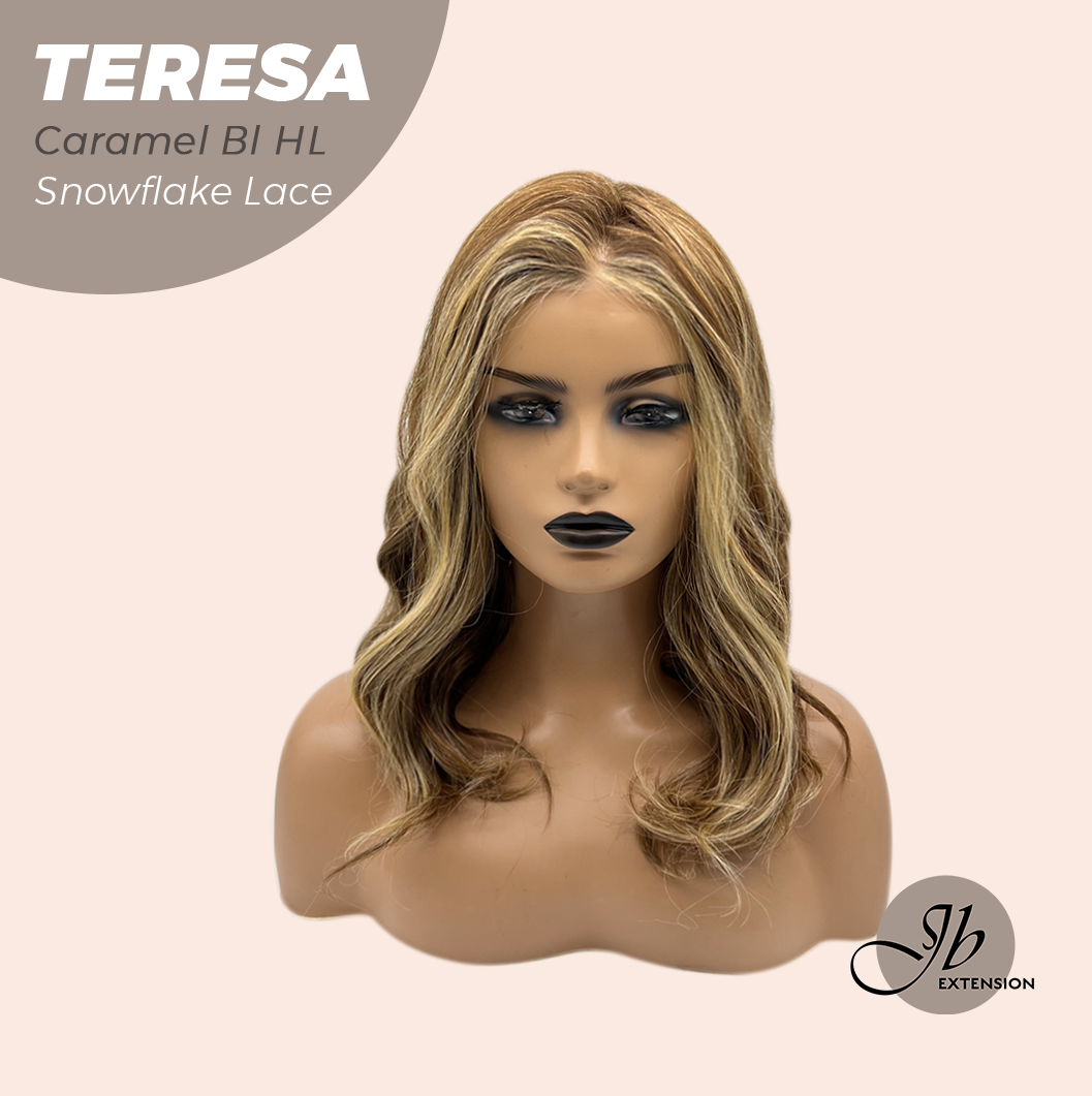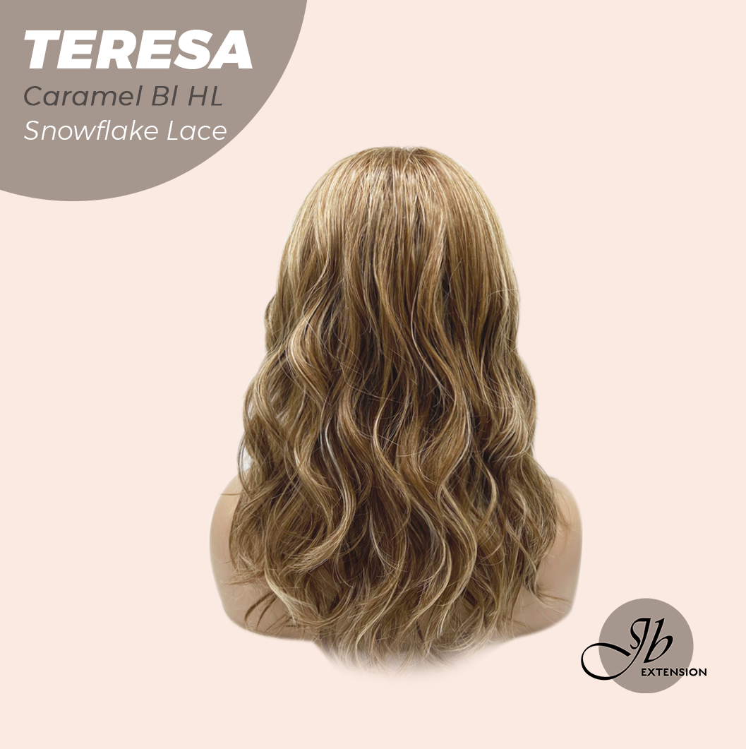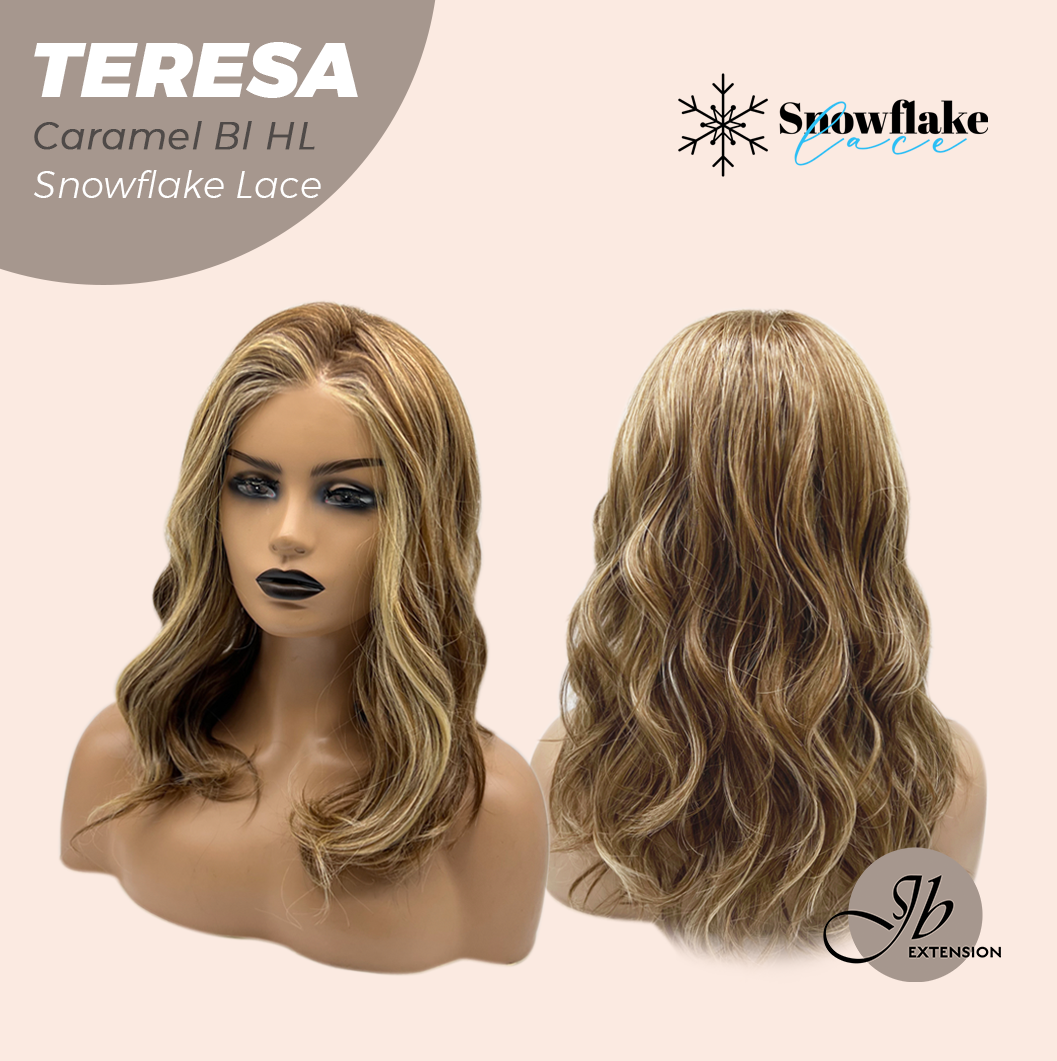 JBEXTENSION 18 Inches Caramel Blonde Highlight Pre-Cut Snowflake Lace Frontlace Glueless Wig TERESA CARAMEL BLONDE HIGHLIGHT【PERMATEASE】【BENDY EAR TABS】