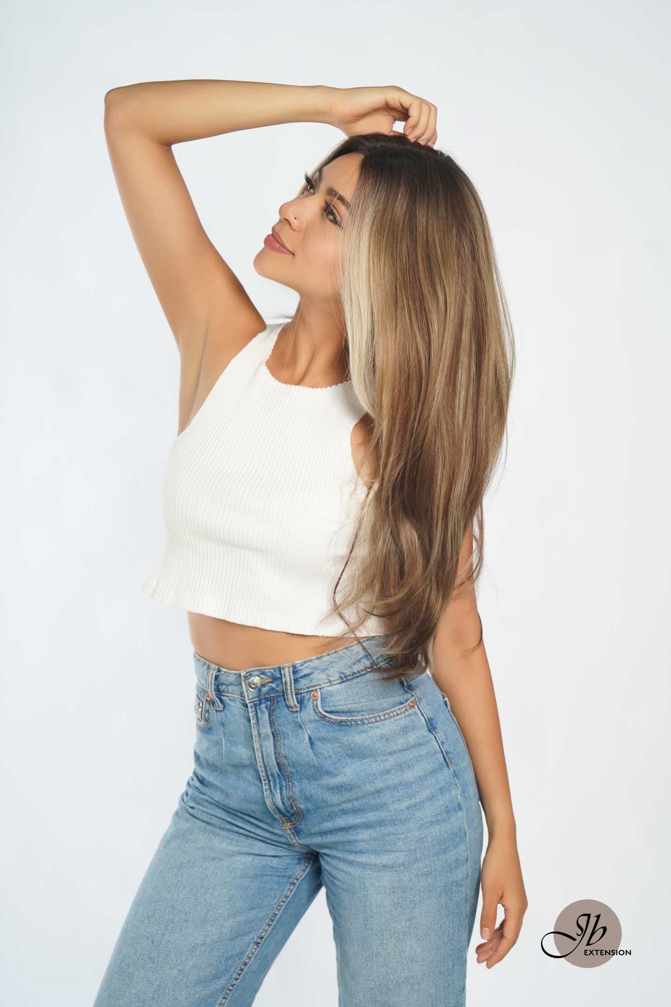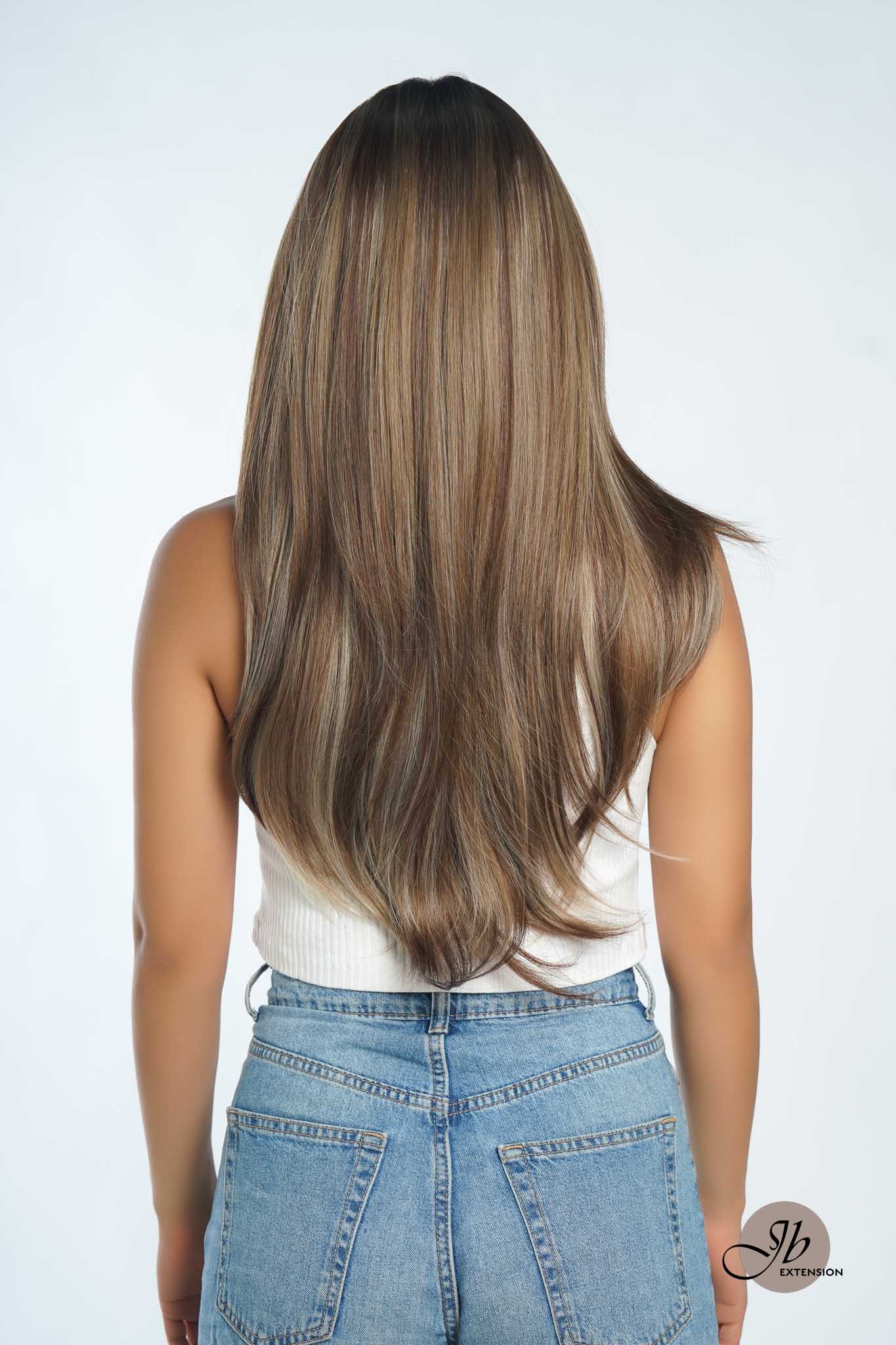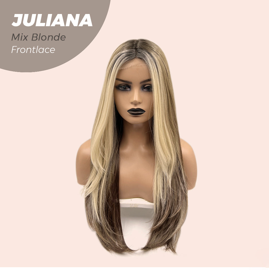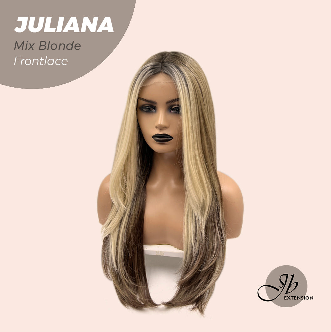 JBEXTENSION 26 Inches Wolf Cut Brown With Blonde Highlight Frontlace Glueless Wig JULIANA MIX BLONDE
