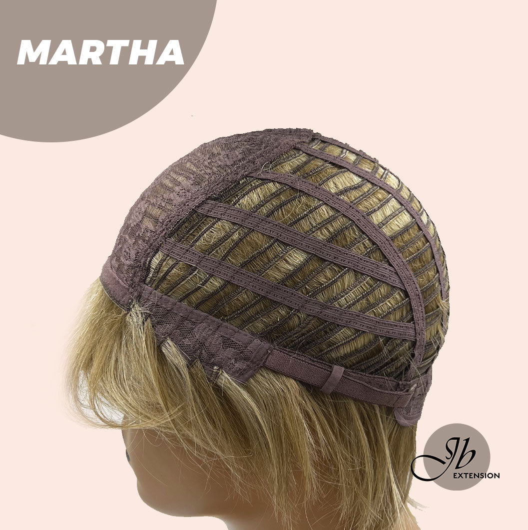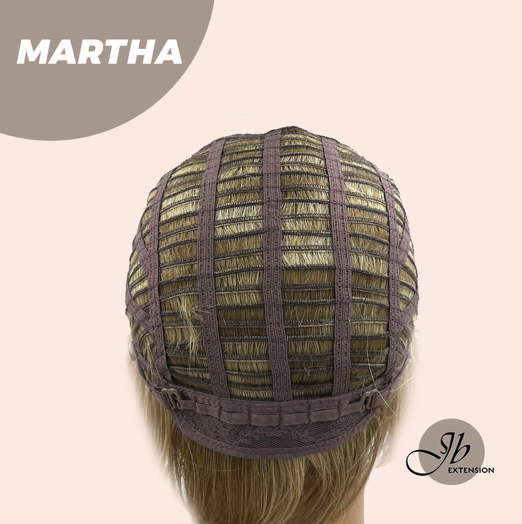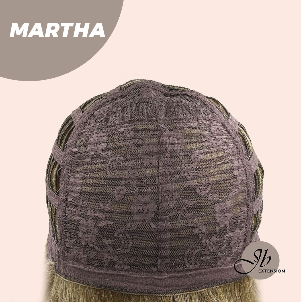 MARTHA Wig by JBextension has a natural lace front hairline allowing you the option to style off the face. ?The MARTHA creates a natural hair growth pattern and allows you to keep the volume need all day long. MARTHA also blends beautifully down to a neck-hugging nape. With a Ready to Wear Machine weft back, velvet ear tabs & Adjustable straps.