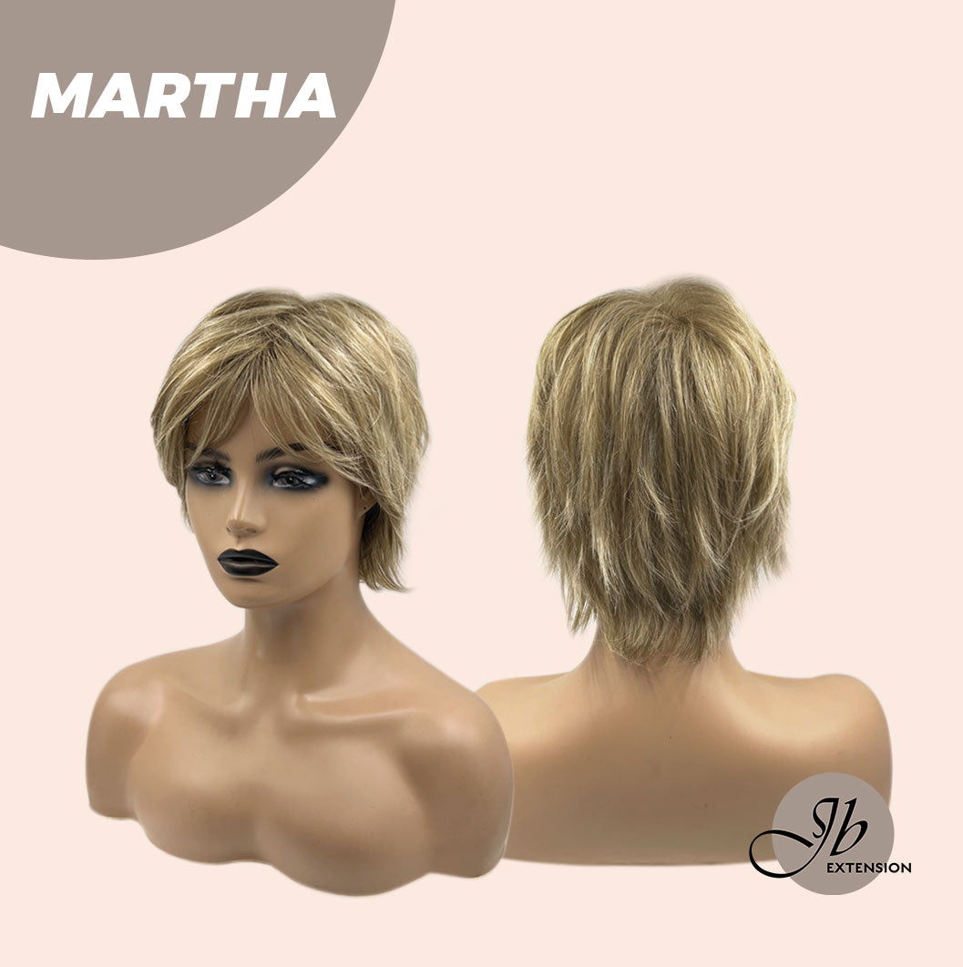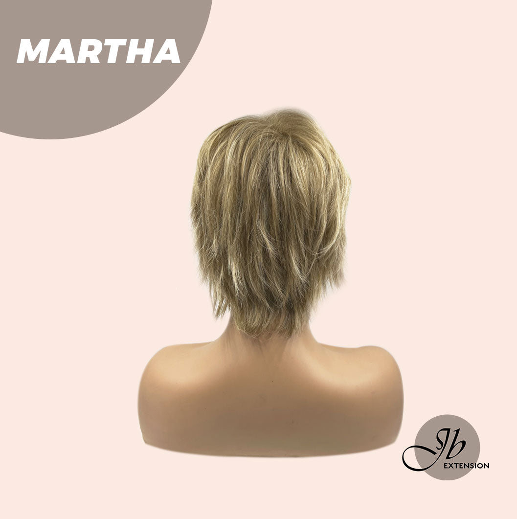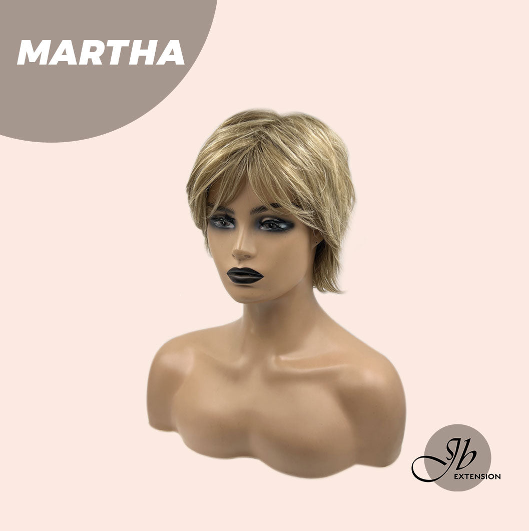 MARTHA Wig by JBextension has a natural lace front hairline allowing you the option to style off the face. ?The MARTHA creates a natural hair growth pattern and allows you to keep the volume need all day long. MARTHA also blends beautifully down to a neck-hugging nape. With a Ready to Wear Machine weft back, velvet ear tabs & Adjustable straps.