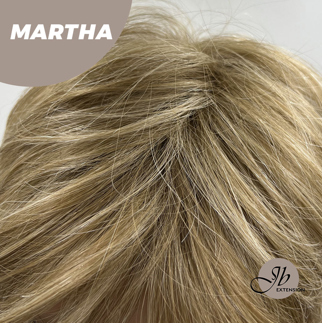 JBEXTENSION Pixie Cut Champagne Half Real Human Hair Half Futura Fiber Fashion Wig MARTHA